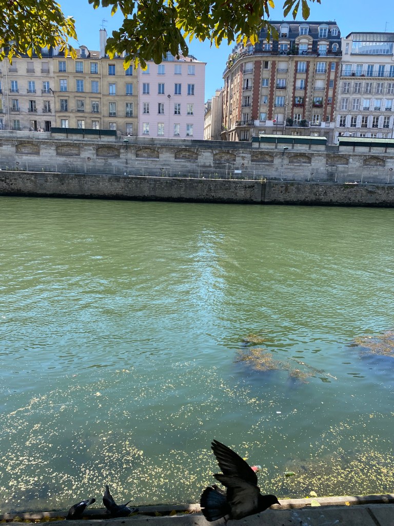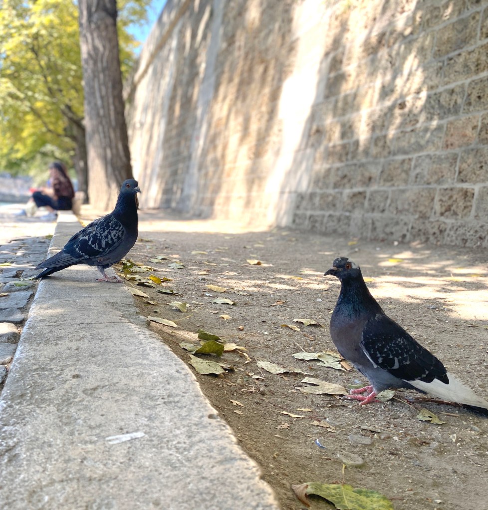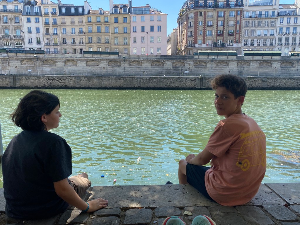 Lovely, right? Well, let me also paint the picture of pigeons around us because one boy (in our family) decided it would be fun to feed them as he initially sat down..aargh accompanied with trash floating along the river canal walls.