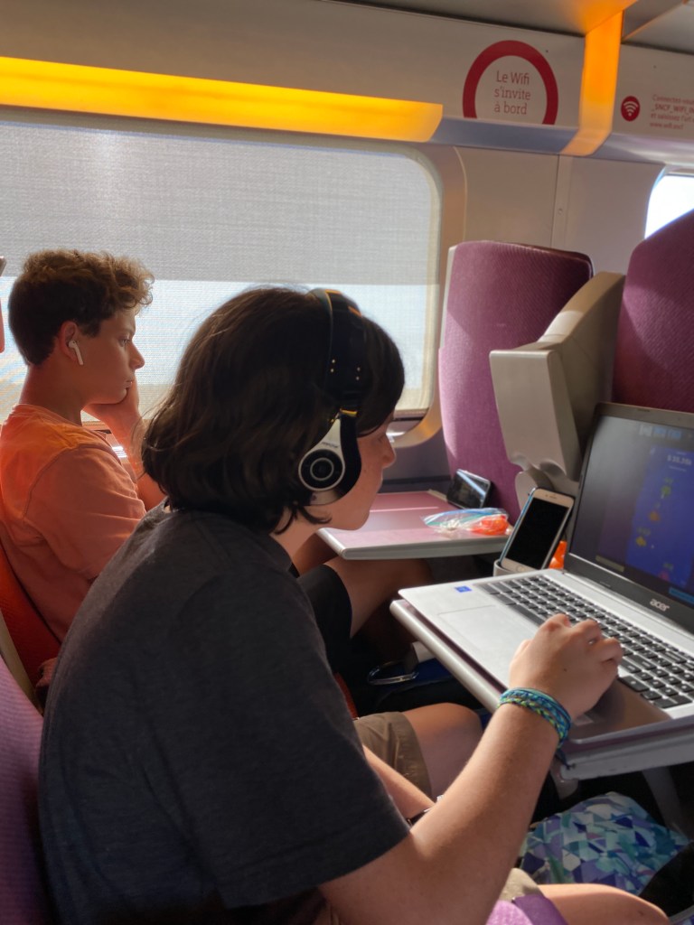 Back at the station, we reclaimed our luggage and were revived with Starbucks smoothies, computer time and a trip to the restroom. A trip to the restroom doesn’t seem like a big deal, however, we had to find a bank at the station to change my $5 bill for 3.5 EUROS (bad rate I know). It was enough, though, to get us each into the restrooms one time. “WHAT, YOU HAVE TO PAY to use the bathroom?” the exact words that came out of my kid’s mouth. When both kids exited the restrooms they both agreed the bathrooms were so nice that they were worth the cost!!! Lesson learned again for sure.