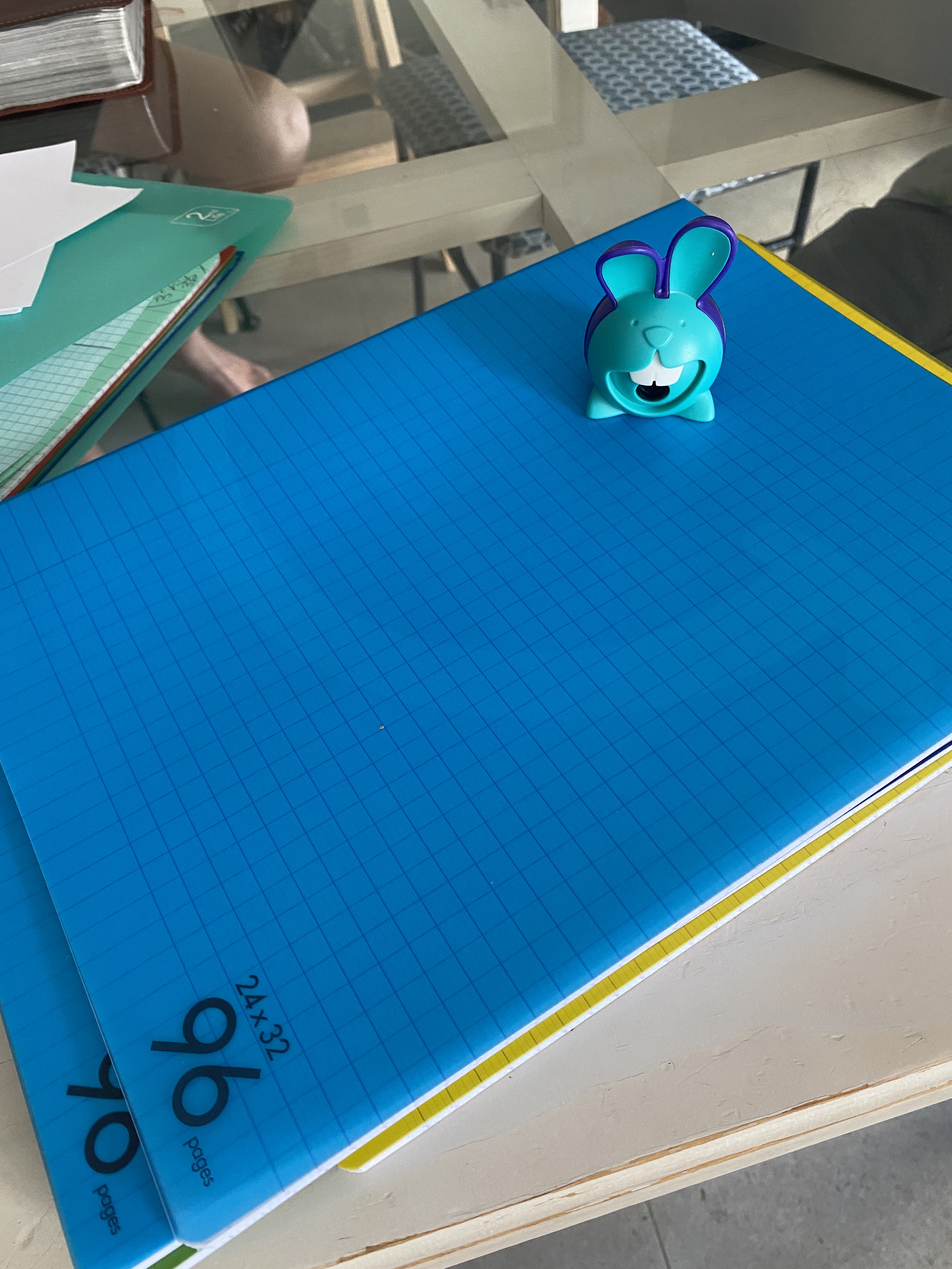 Today is the beginning of my new role this year. I am the kids’ supervisor for their online academy. The academy provides all the teaching, testing, and grading. I manage the kids’ work, open testing assignments with a passcode, and help facilitate their learning this year. Zach and Mazie are enrolled in NorthStar Academy Online, based out of Mississippi. This academy was originally started for missionary children in 1998. They now serve over 3000 students in 100+ countries. Below are picture of school supplies. American paper, followed by French composition books and paper, and a fun pencil sharpener for Mazie. The glass dining table will serve as desks…for now.