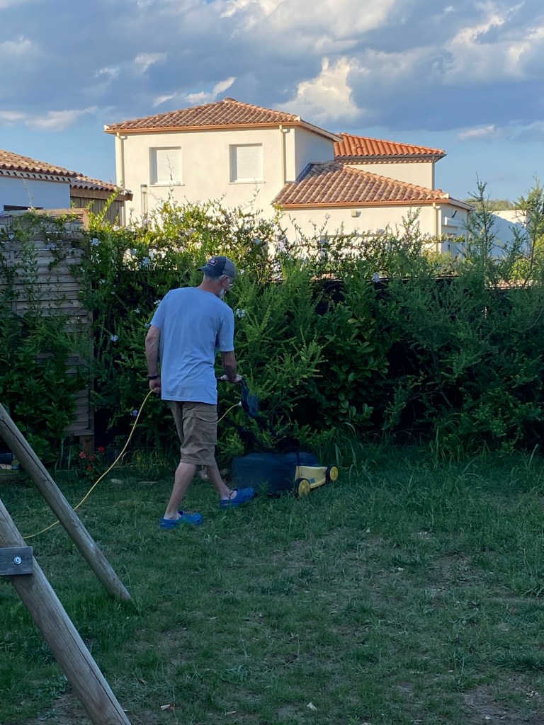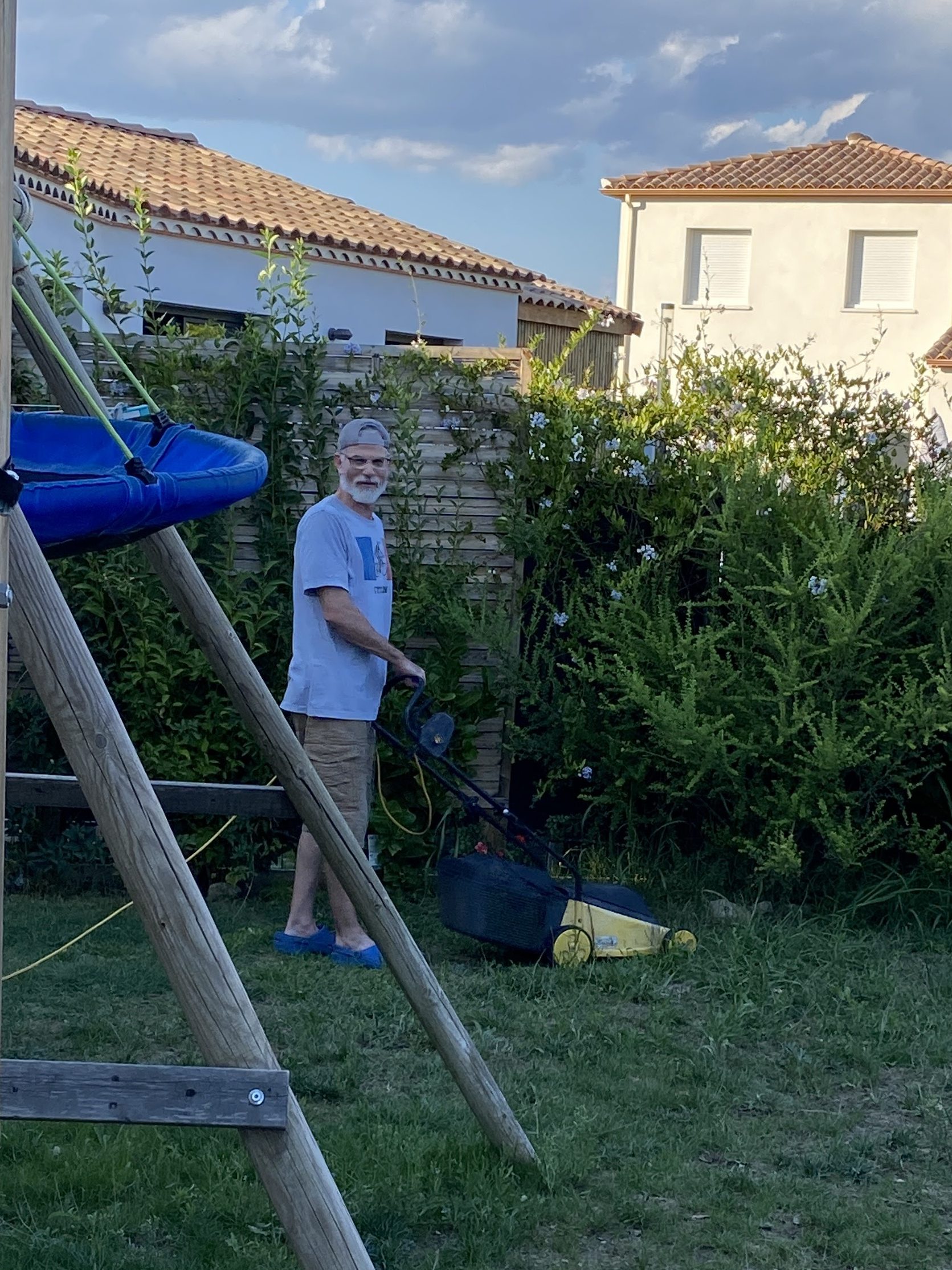 The pool remains a source of happiness. The grass was cut using an electric lawnmower. Randy commented it felt and sounded like vacuuming the grass.
