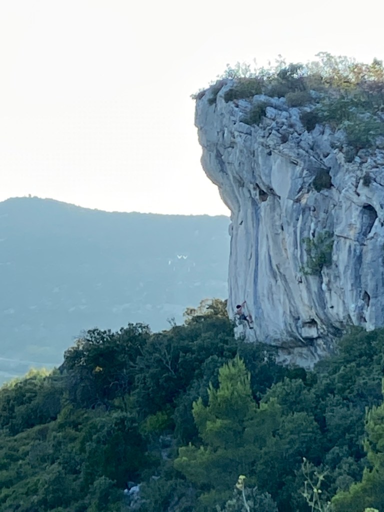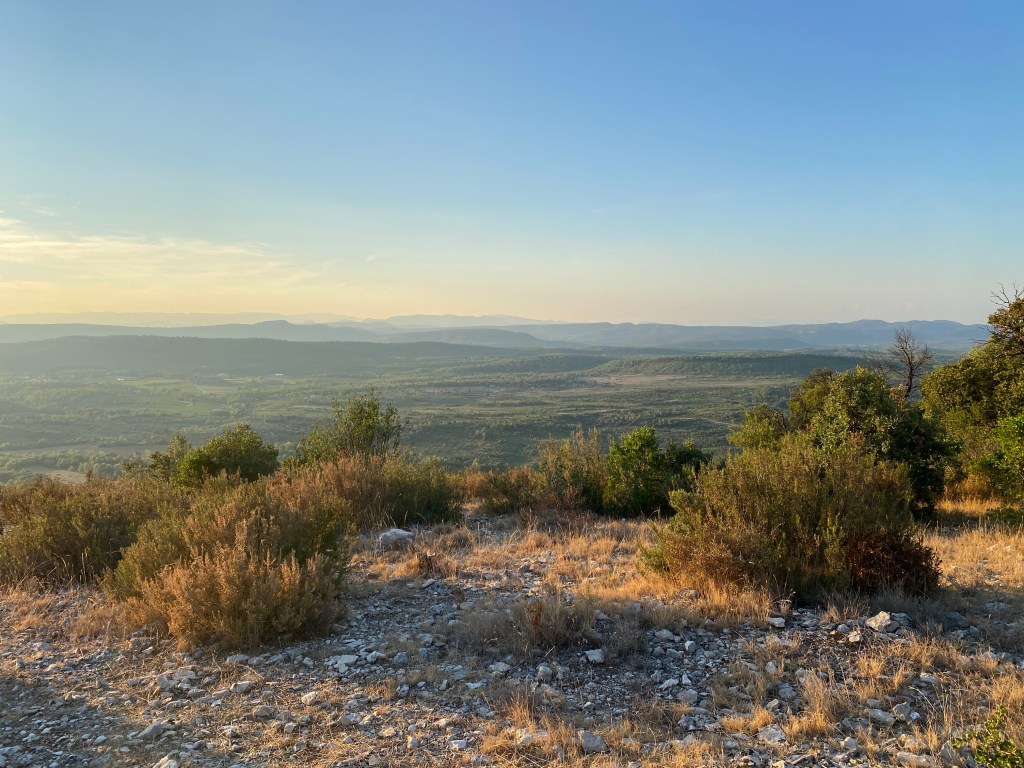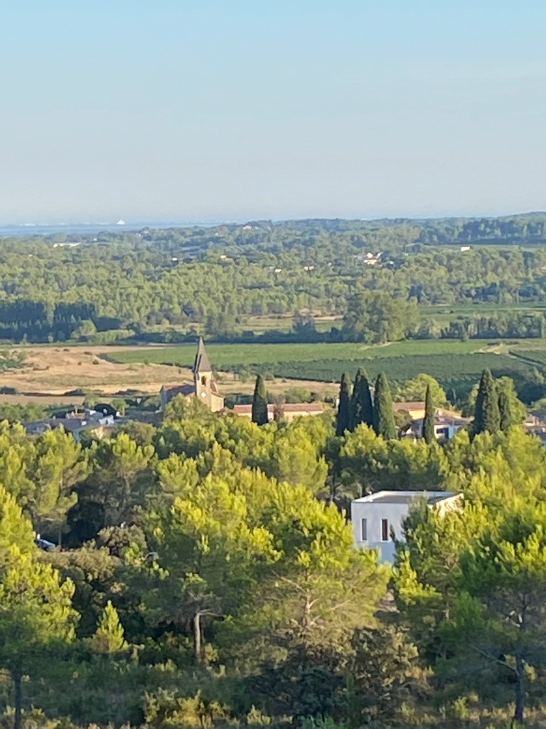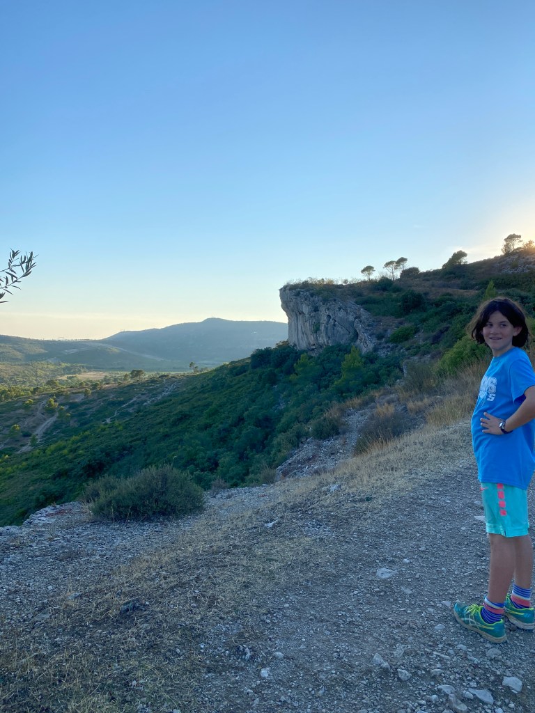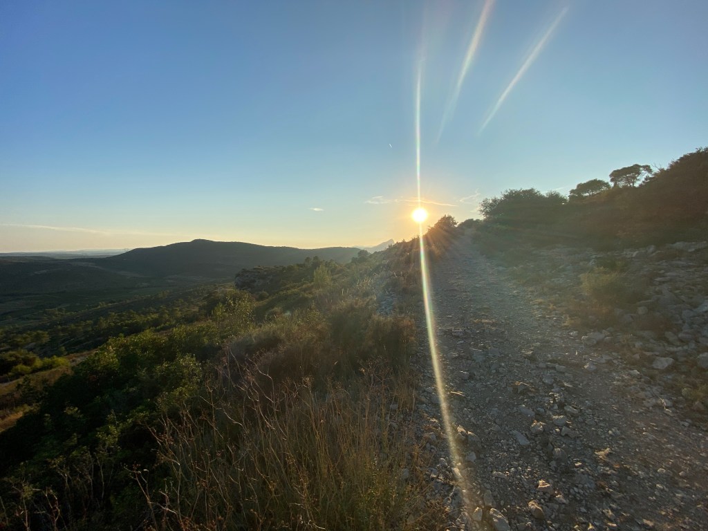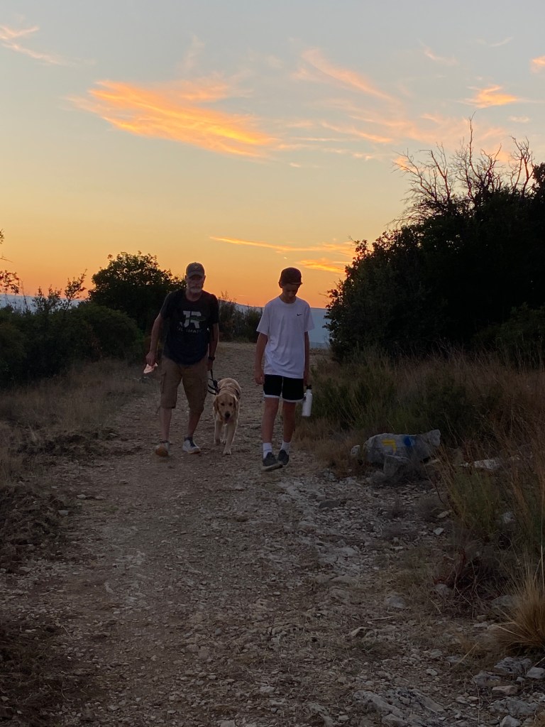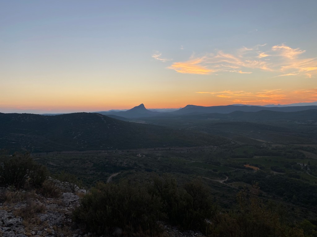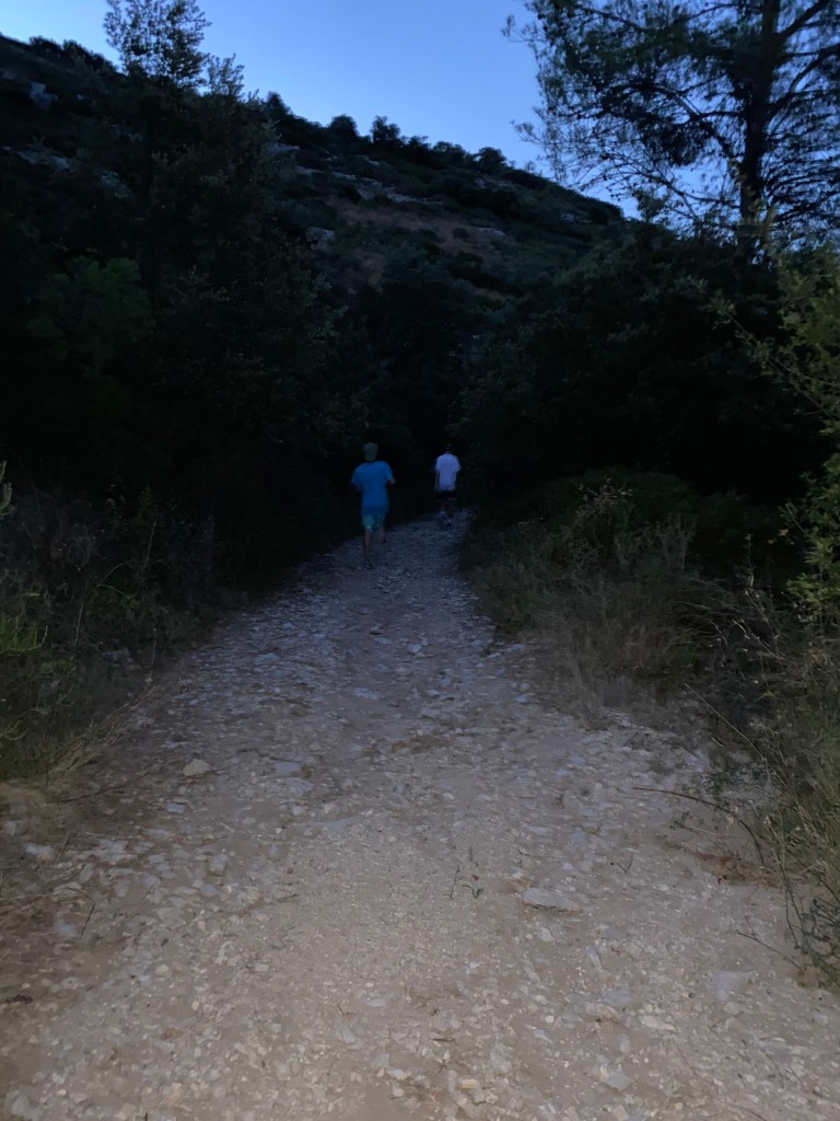 Our weekend ended with a short drive to a hiking place with incredible views Table d’orientation du Puech des Mourgues. One review mentioned a 20 minute hike from the parking lot. Perfect, we thought. Randy made a picnic dinner and we took off, bringing Cody too. Google maps and our understanding of the directions only had us go around a triangular block one extra time. We are getting better!