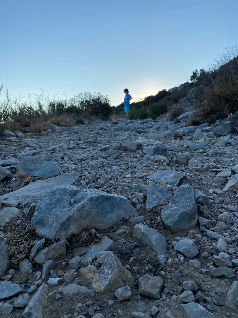 Eventually, we noticed the other family leaving the top. Hmm, we realized it was about to get dark and we had at least 20 minutes to walk on a rocky path. Could we make it in time to the bottom before dark? We did not bring flashlights and our phones were on low battery. We took off, the path seemed different. I found myself commenting on things I had not noticed on the way up, such as the tall carin formations, 6 patches of dug up dirt, a piece of flat rock that you could balance on and tilt back and forth. Great, we started down the wrong path! The light was quickly fading into the ground.