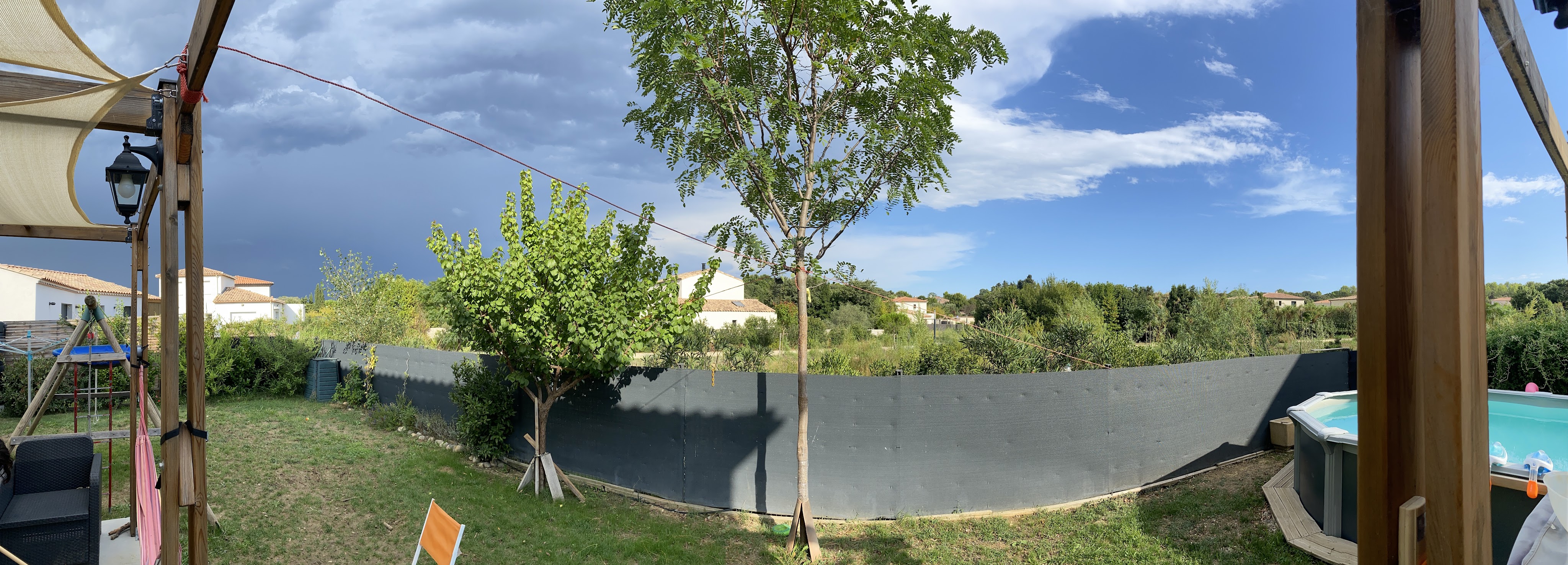I even found printer ink and a sewing kit. Yet I still wanted to cry once I was back in the car. I have been in 5 different grocery stores in the past 3 weeks. Hopefully, I will learn which store I like and which store has what I want. I need to learn how to communicate in French in a grocery store. My life often feels like the panorama picture below. The sky is 1/2 bright, cheery, clear and doing well. The sky is also 1/2 stormy and unpredictable, waiting for the next thing to happen. I am thankful Randy can speak, listen and converse in French.