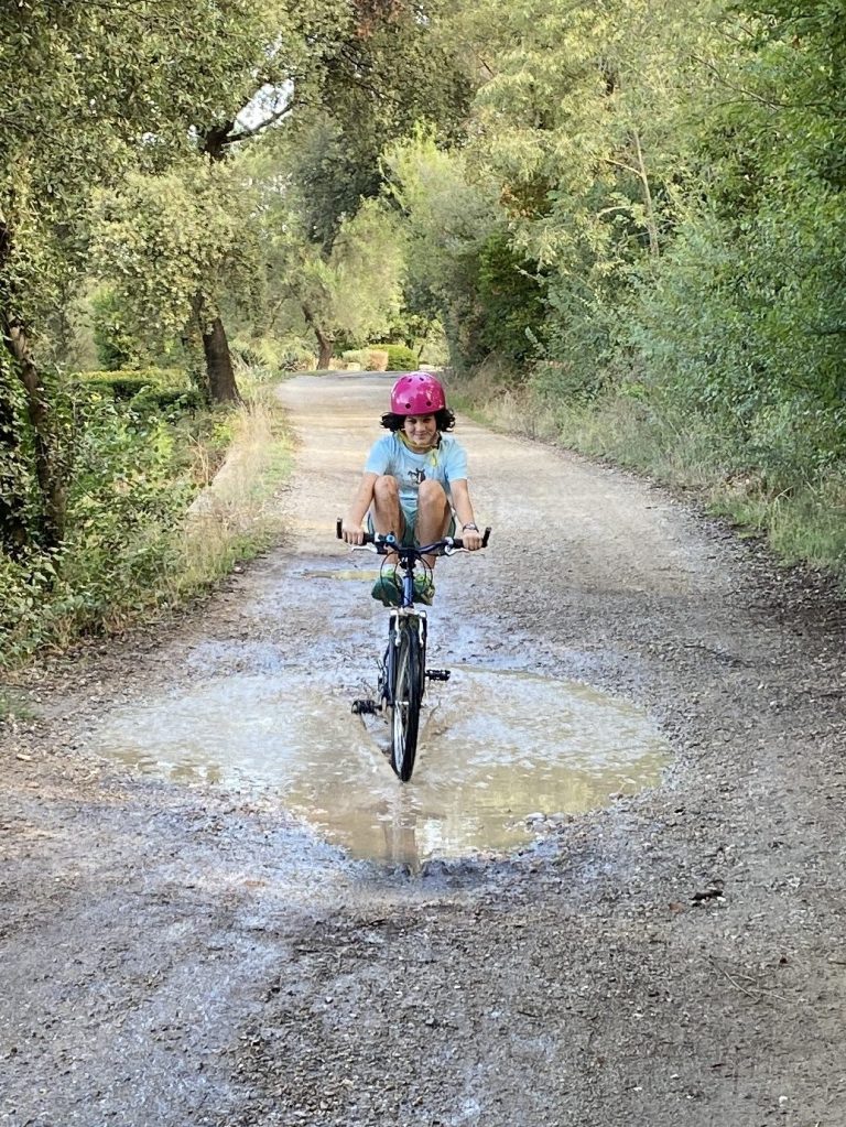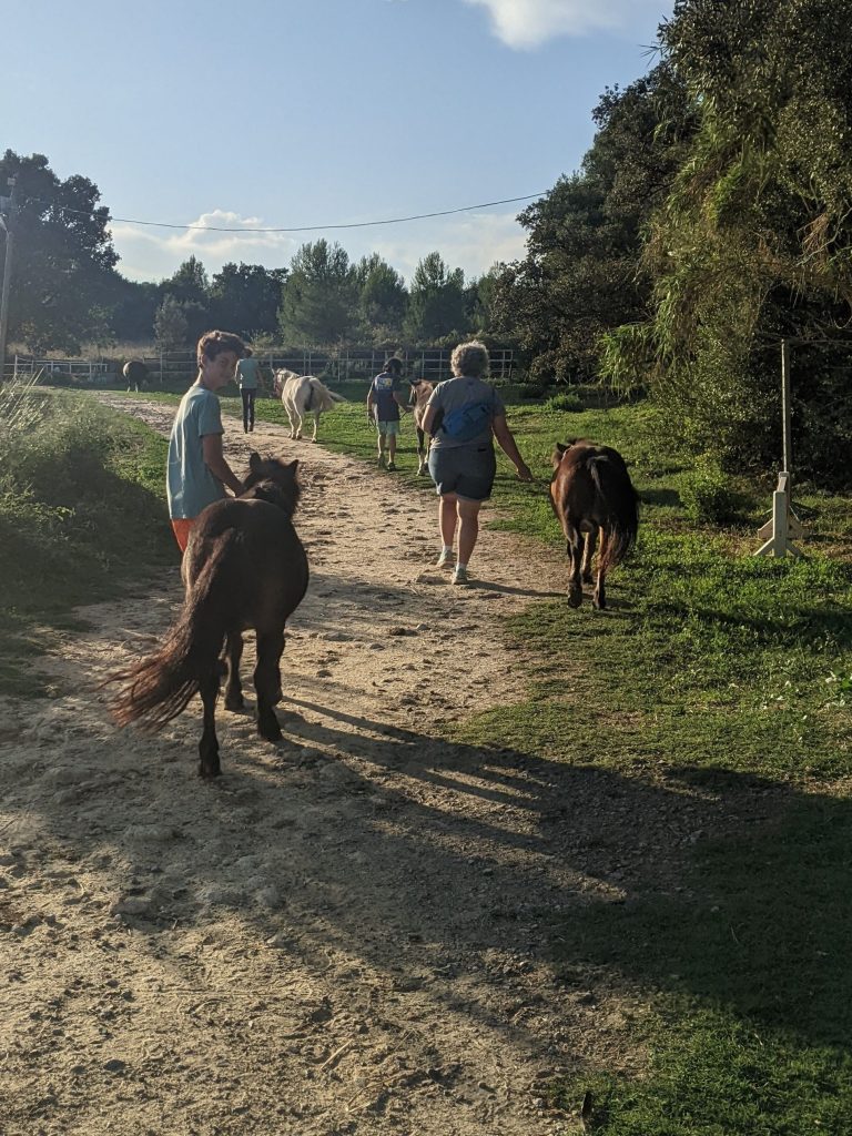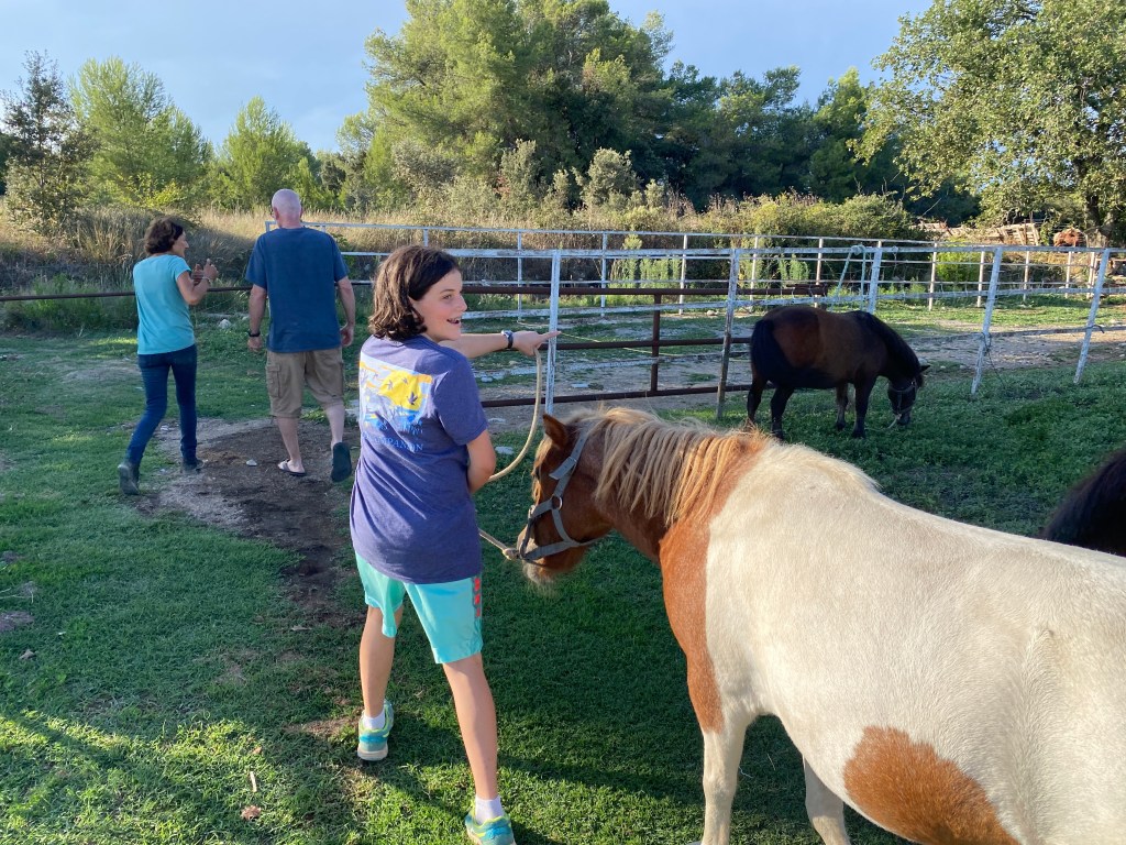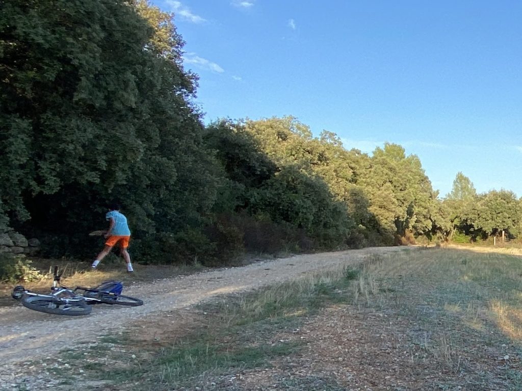 Around 6pm we headed up the street to visit and learn about horse riding lessons. I am thankful Randy can speak, listen AND converse in French. (I have written this before.) The entire 70 minute introduction and getting to know you was all French and through Randy. We even gathered escaping ponies while we were seeing the center. Mazie will begin Wednesday morning, before school. The entire lesson will be in French so Randy will have a briefing of French horse vocabulary before then with Mazie. After horse, Zach headed on his bike to another field and threw a round of discs.