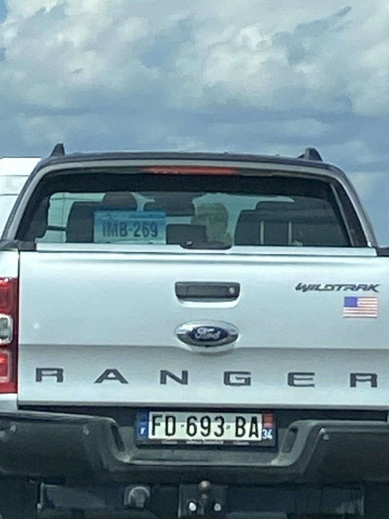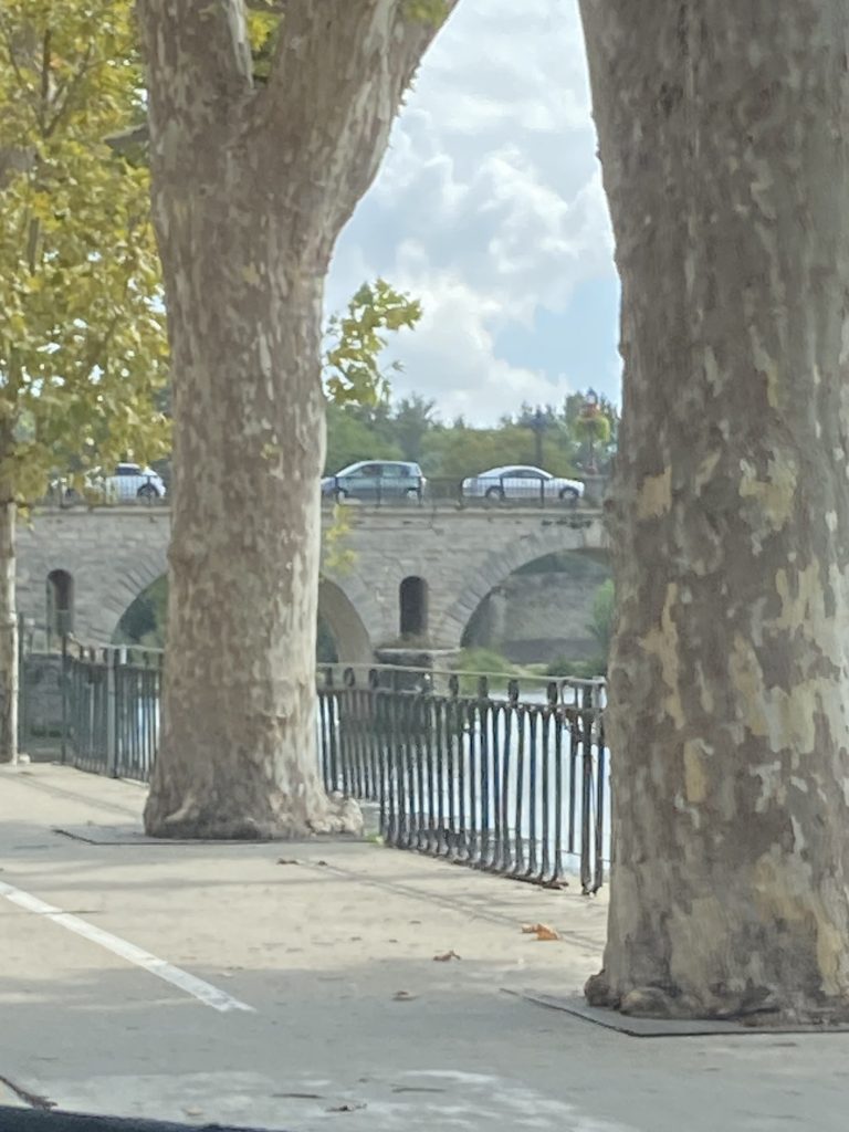 Today’s driving outing led us via Mazie’s maps, to the pet store and a new town, Sommieres. At the pet store I was trying to let the cashier know that I speak English not French, because I still do not understand French after 4 weeks. Instead of letting her know, I told her to speak English…I didn’t even realize it until I was back in the car…so RUDE of me. She responded well and in English. For this I was grateful and even more so now that I have realized my gross error. We headed to Sommieres to see a bridge because it was only 20 minutes away. On our drive there we found ourselves behind a Ford Ranger truck with a Montana license plate in the rear window. A little bit of home for us.