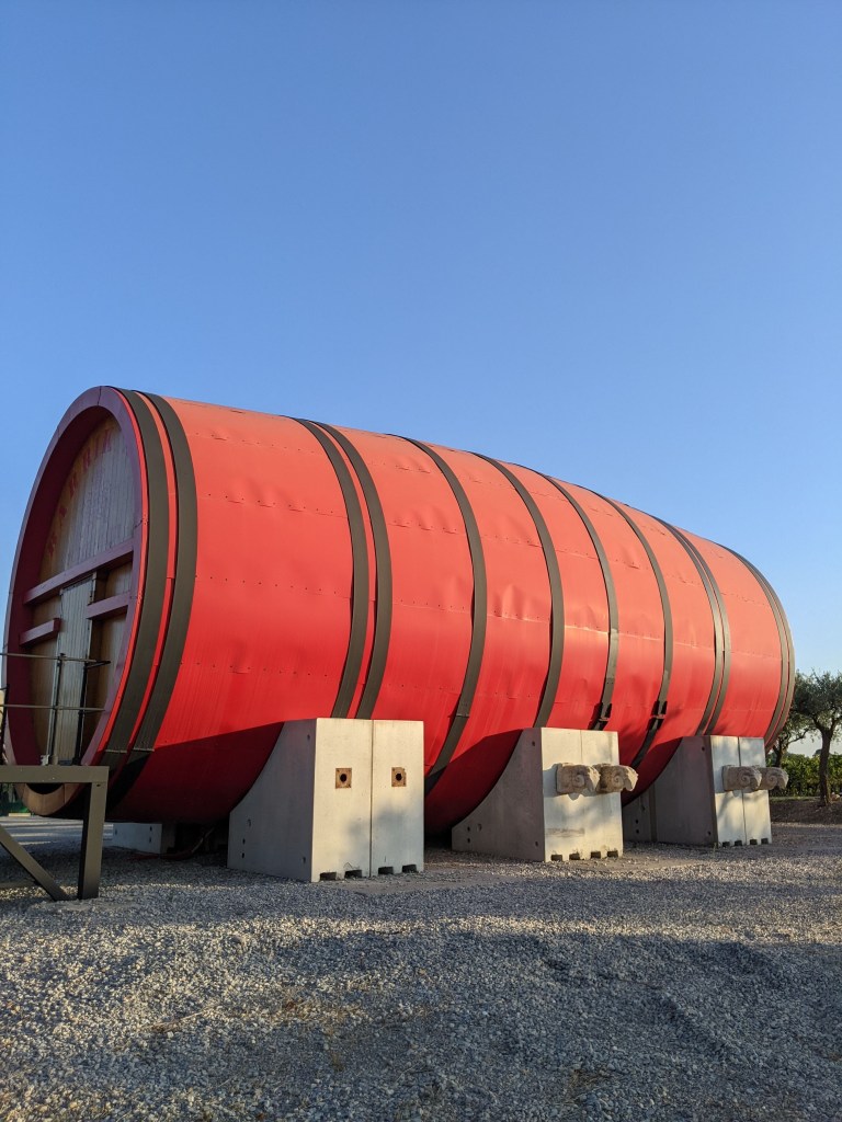 We continue to look for walking places for Cody to run and enjoy his life. Just up the street seems to be perfect. He can run off leash, kids can bike, puddles appear after a rain, vineyards are on the right, a throwing and fetching field is on the left and on the next ridge up ahead is the biggest wine barrel ever seen! Saturday Cody and the kids enjoyed the puddles of mud, while I enjoyed an afternoon of a tired Cody.