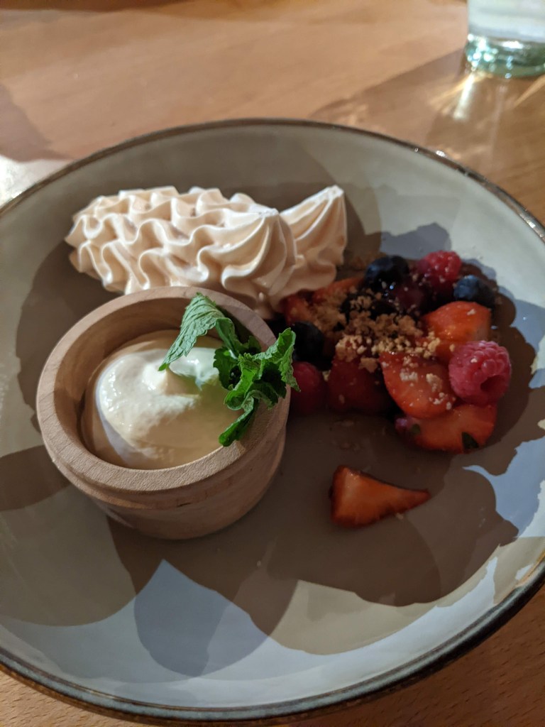The first picture shows nettles, which Mazie accidentally found and taught us to stay away from them! After unloading and getting our bearings we walked into town and had a tasty cheesy meal at Gruyere Traditions Switzerland, along with dessert.