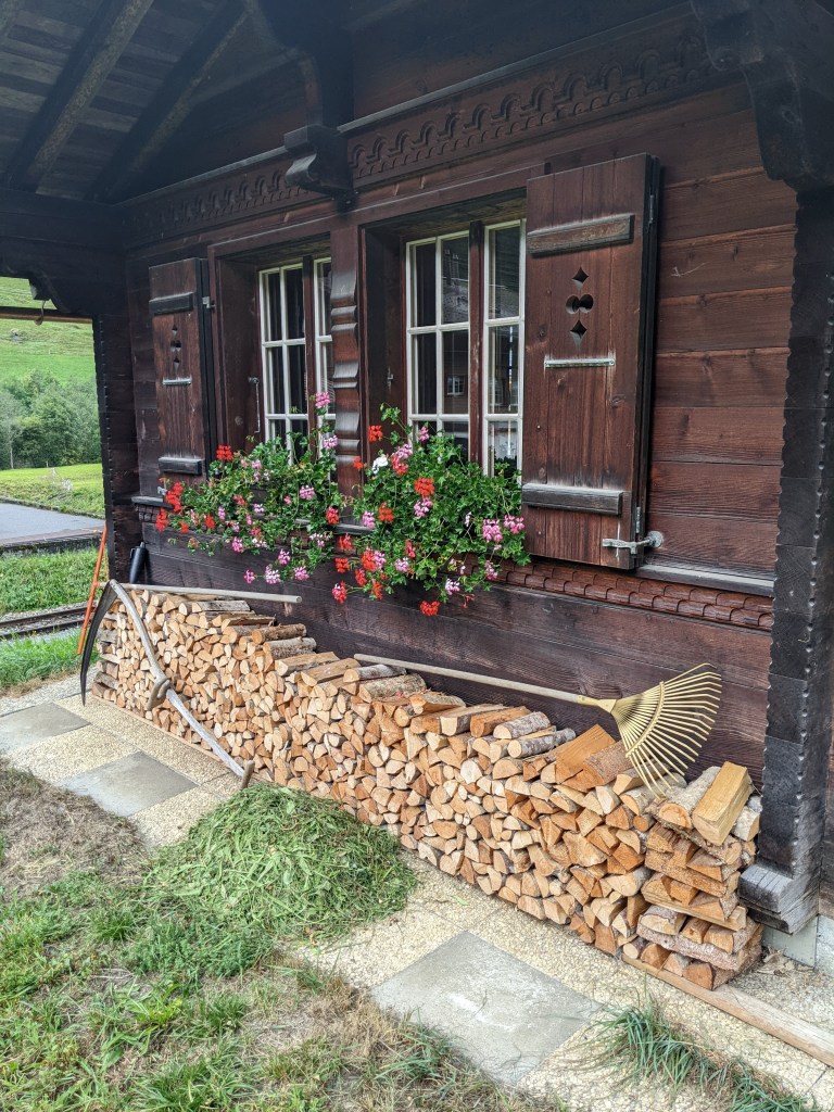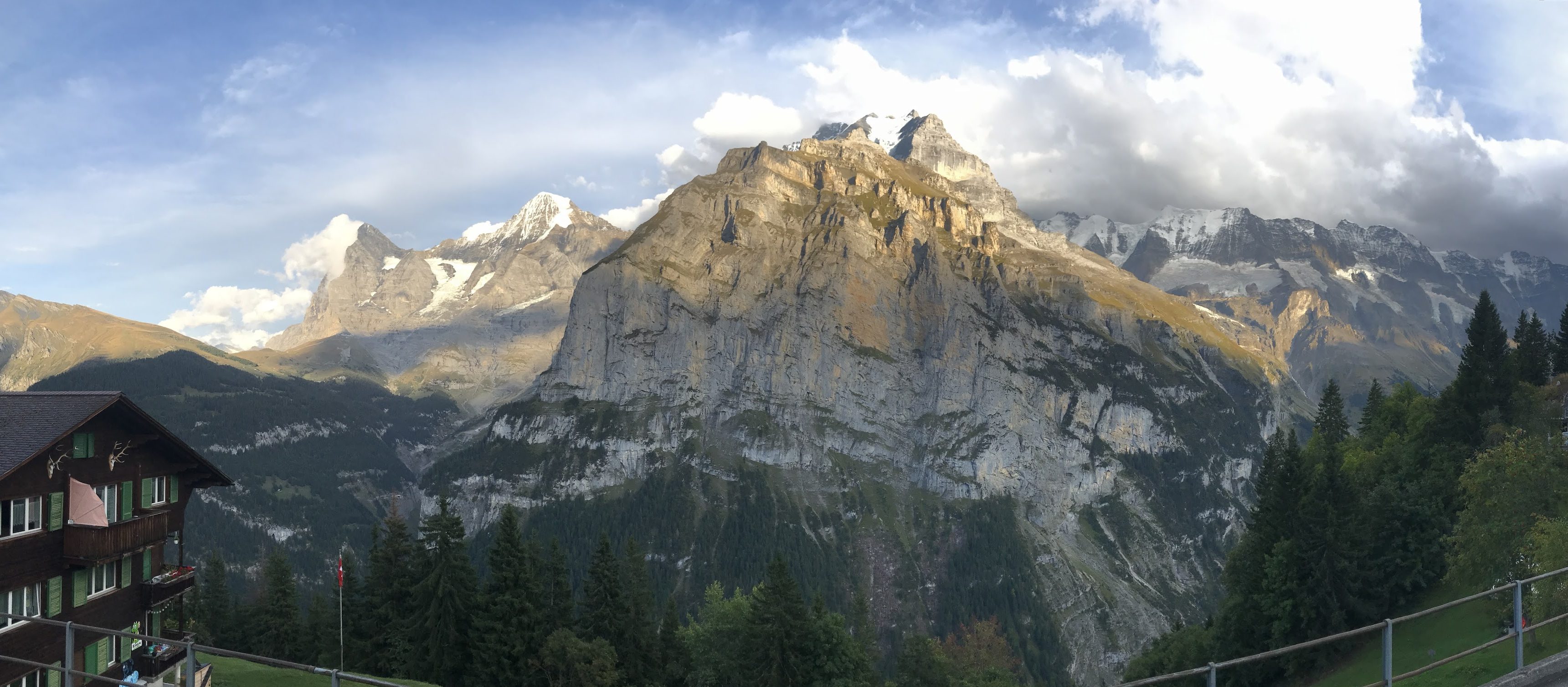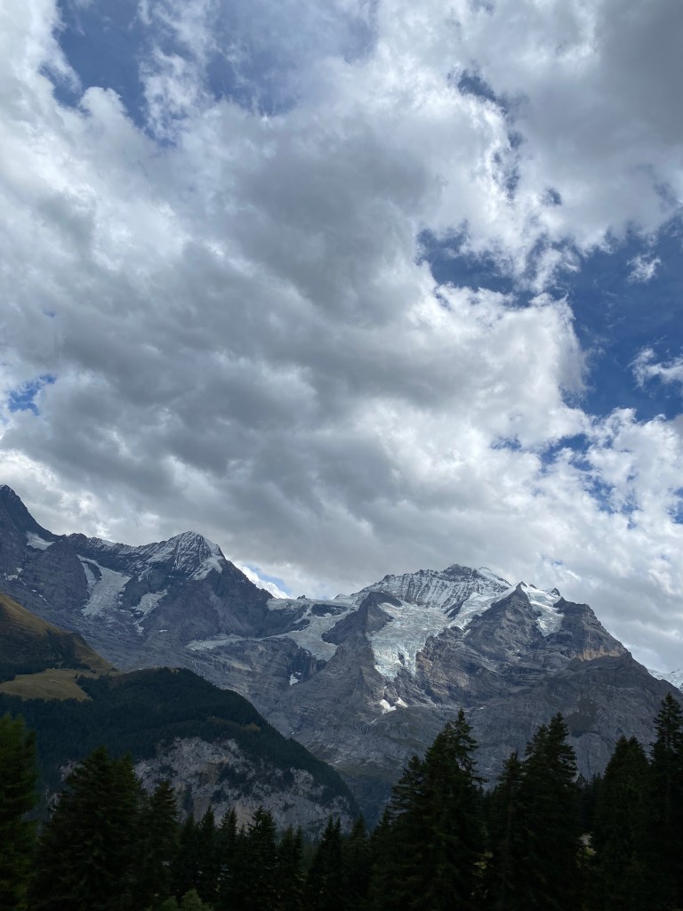 We decided to eat pizza in Murren and watched the sun light up the mountain sides.