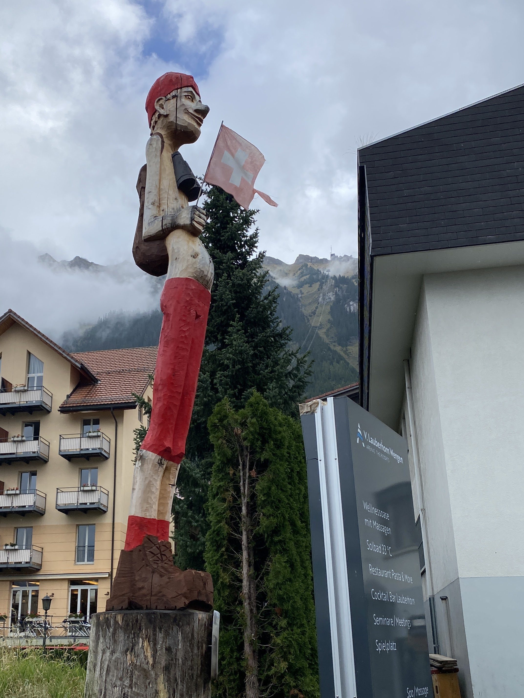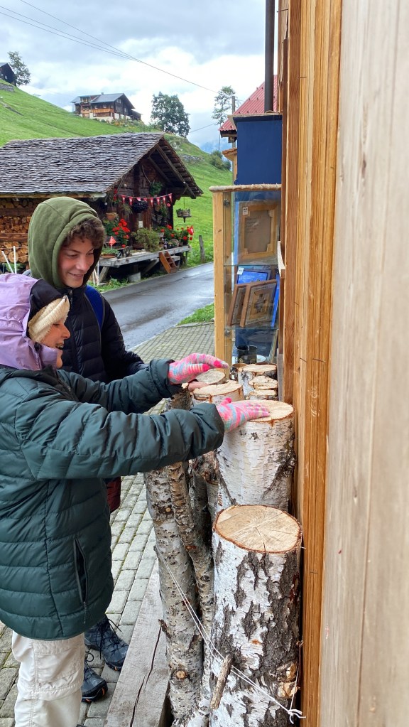 Cable car rides and trains took us to many different villages to see the parade and for afternoon adventures. Gimmelwald’s population is mainly cows with a few families and no cars. Stores are “honesty stores,” open for you to shop and purchase based on honesty. No one will greet you nor ring up your sale. What looks like little free library boxes are full of cheese for sale, not books to give.