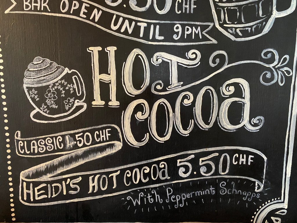 We ate pizza at the Mountain Hostel. Back in my 20’s my sister and I stayed in the Mountain Hostel and experienced the “Heidi,” a hot chocolate with peppermint schnapps. Cheers to the good old days!!!