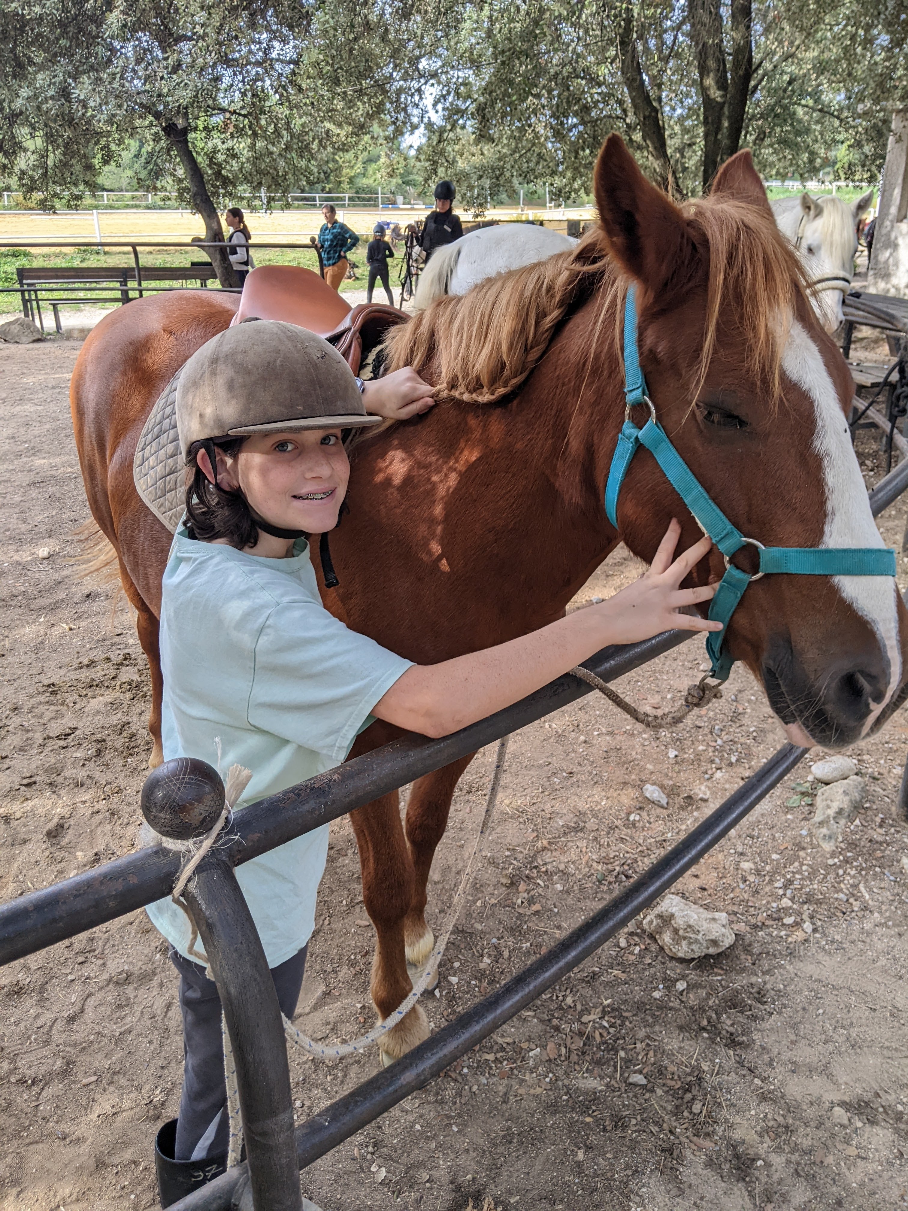 Also this week M moved to a higher level in horse riding groups. She was hesitant but was glad to have moved up. Some of the riders even speak a little English which was nice for M. They played games and ran races! Next time she will be bareback, so I am told.