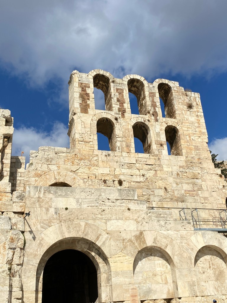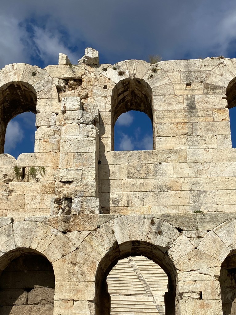 - We entered the Acropolis on the western side going past Ωδείο Ηρώδου του Αττικού…Herod Atticus Odeon (a building for musical performances) erected by Herod Atticus between 161-174 AD, remembering his late wife Regina.