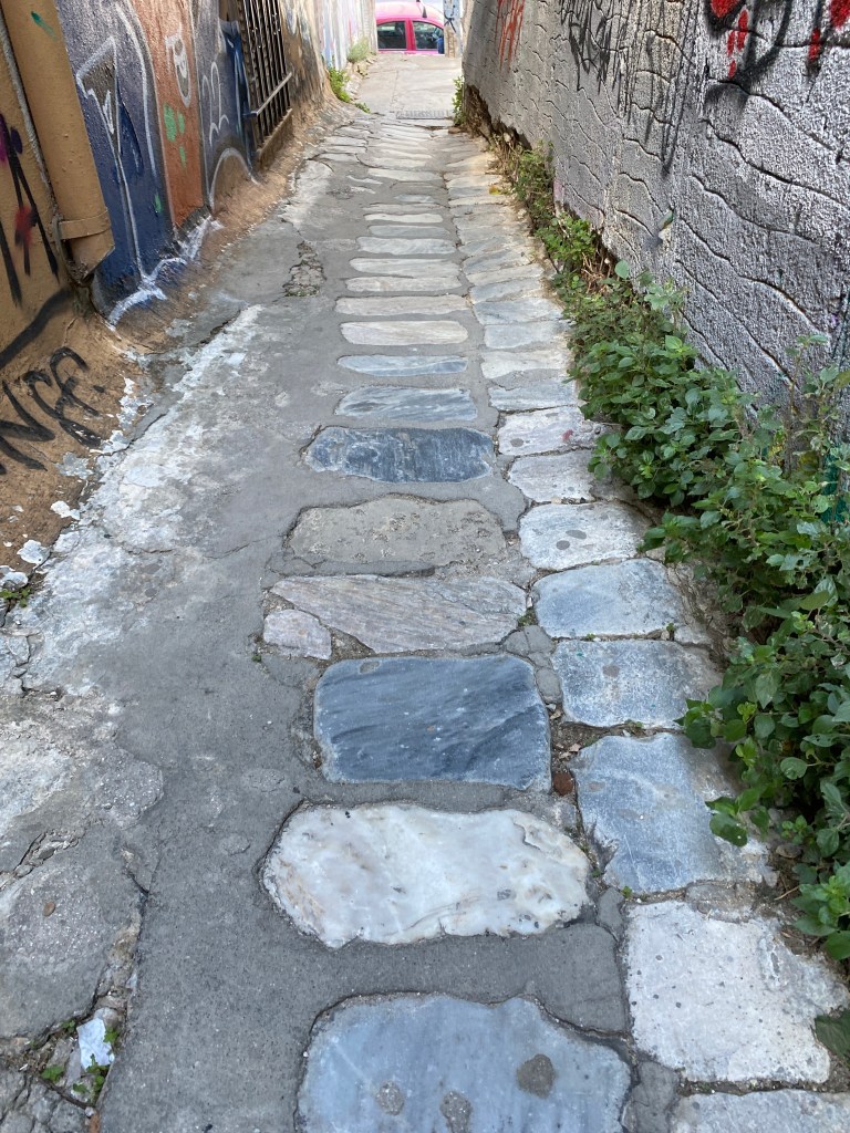 - Graffiti and marble are everywhere in Athens. This area is not immune.