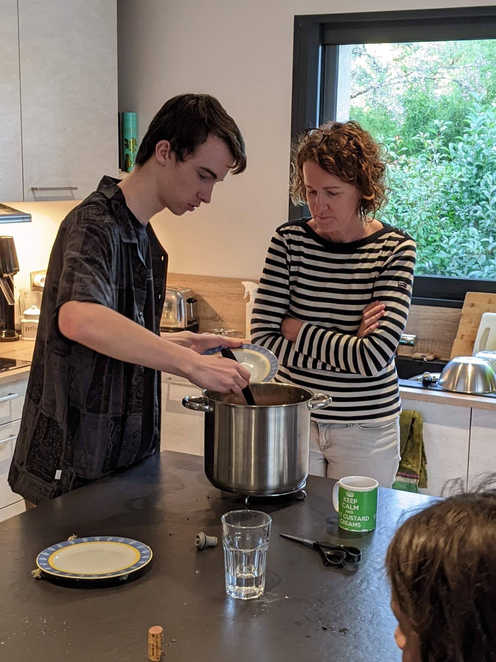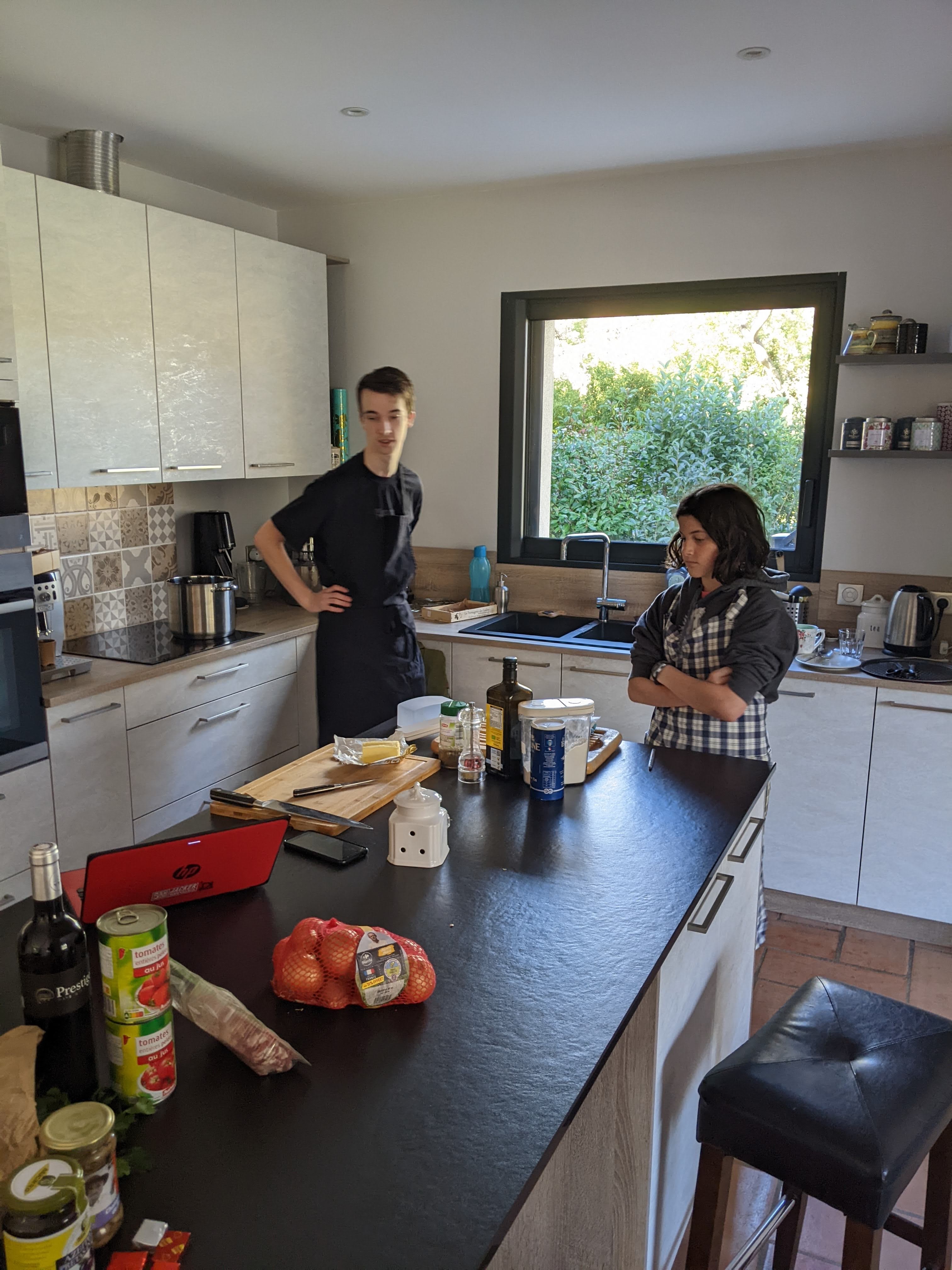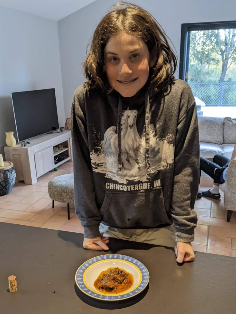 Mz is taking “Life Skills for Middle Schoolers” this semester. In my opinion this class should be mandatory for all middle schoolers. Throughout the semester she is working on a travel blog, showcasing a new place over the next 5 months. Each week she has a different topic to research and add to her blog. Mz chose to write a travel blog about Montpellier, France, fitting I would say. A couple weeks ago she had to research a type of food known to the region. Red wine was chosen because she rides by vineyards daily. The next week she had to find a chef or local person to help her cook a local dish, using local red wine. Jake, a high schooler from the church we attend, is pursuing a chef career. Mz asked Jake if he would help her.