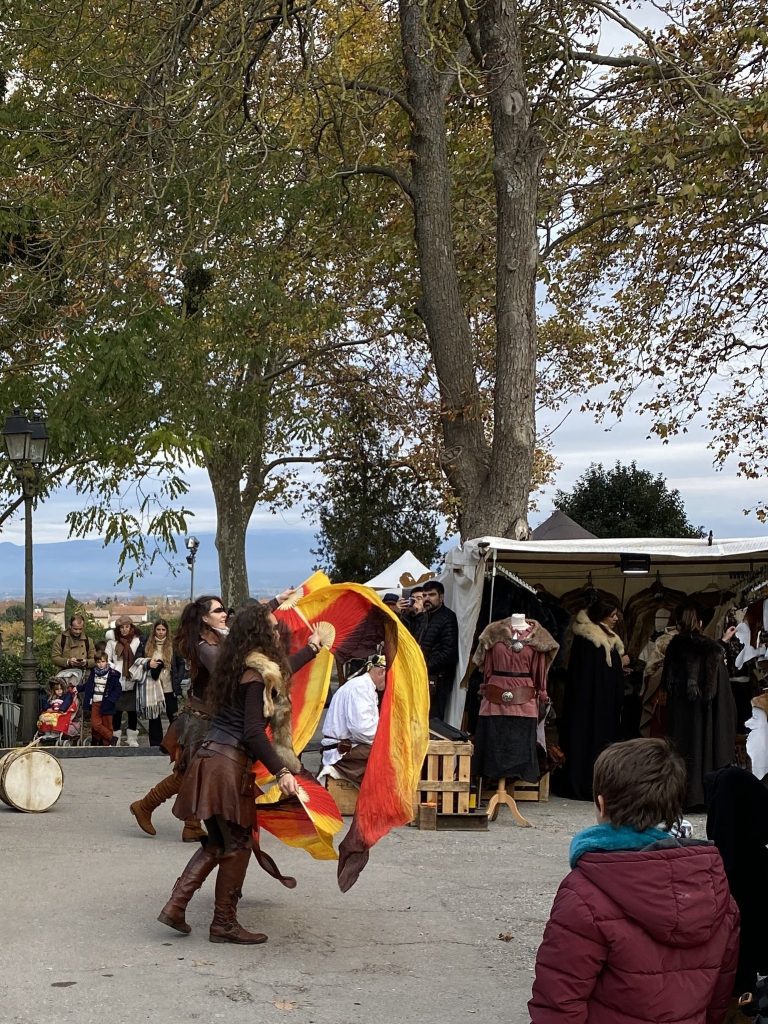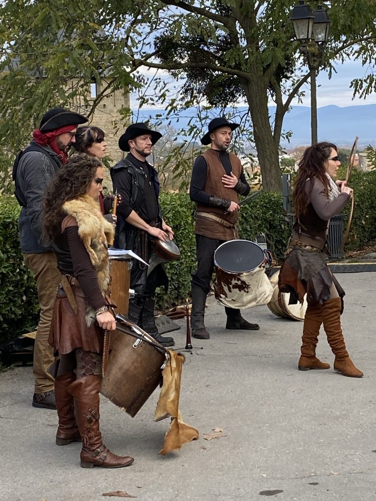 The next morning we hiked up the hill hoping to find a Christmas market. The market was set up outside the walls and had a Medieval theme with animal skin clothing, iron and leather goods, jams and honey, and crafts of the earth, not really sure what that means but it sounded appropriate for what I saw. A band occasionally played and drew a crowd.