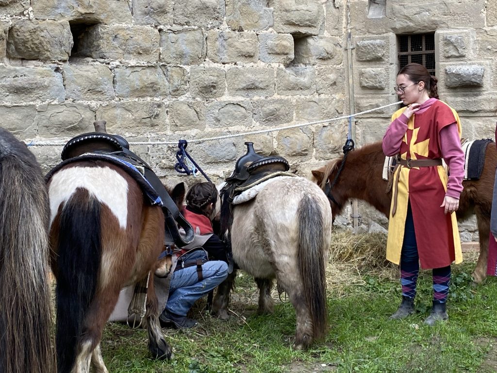 When we crossed the drawbridge, what to our wondering eyes should appear, but a miniature medieval camp and 8+ stations to learn.