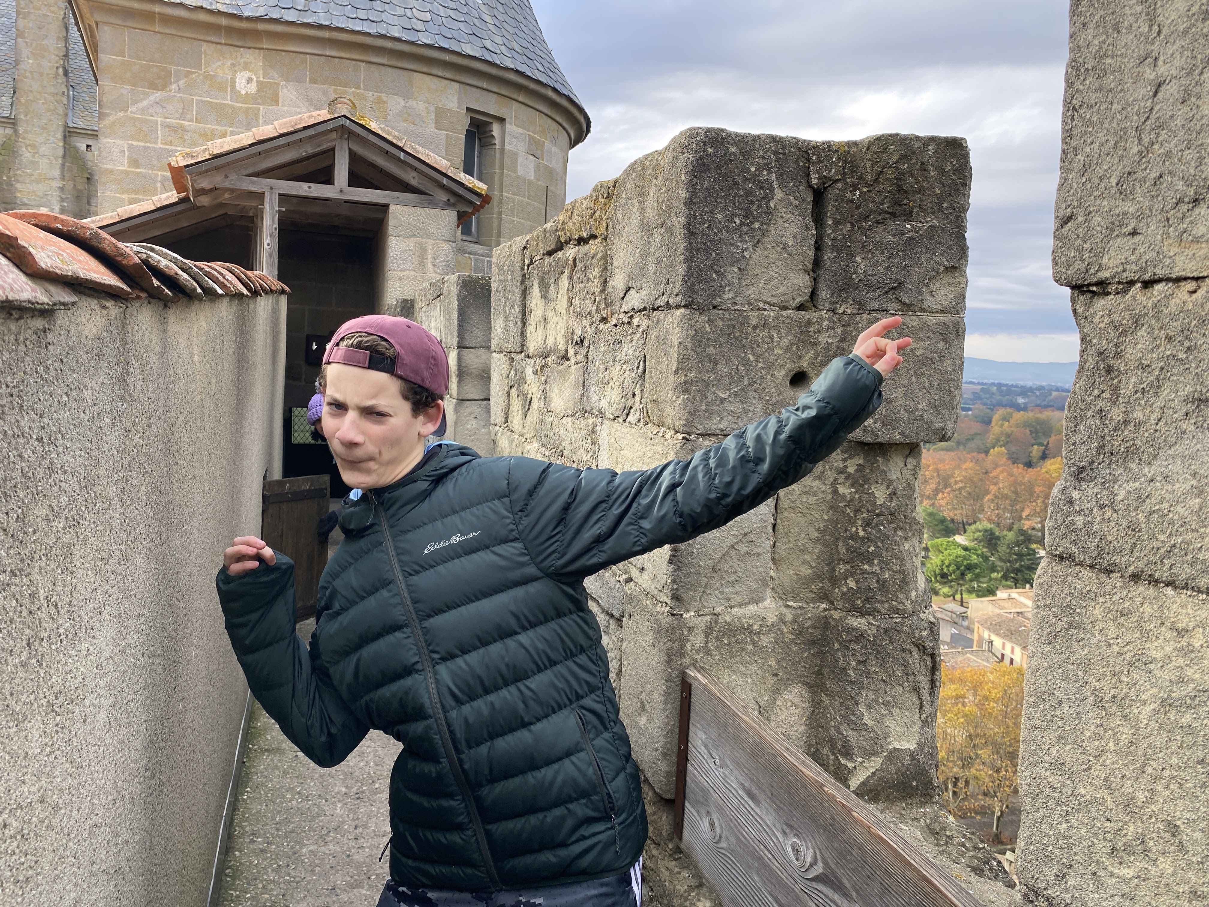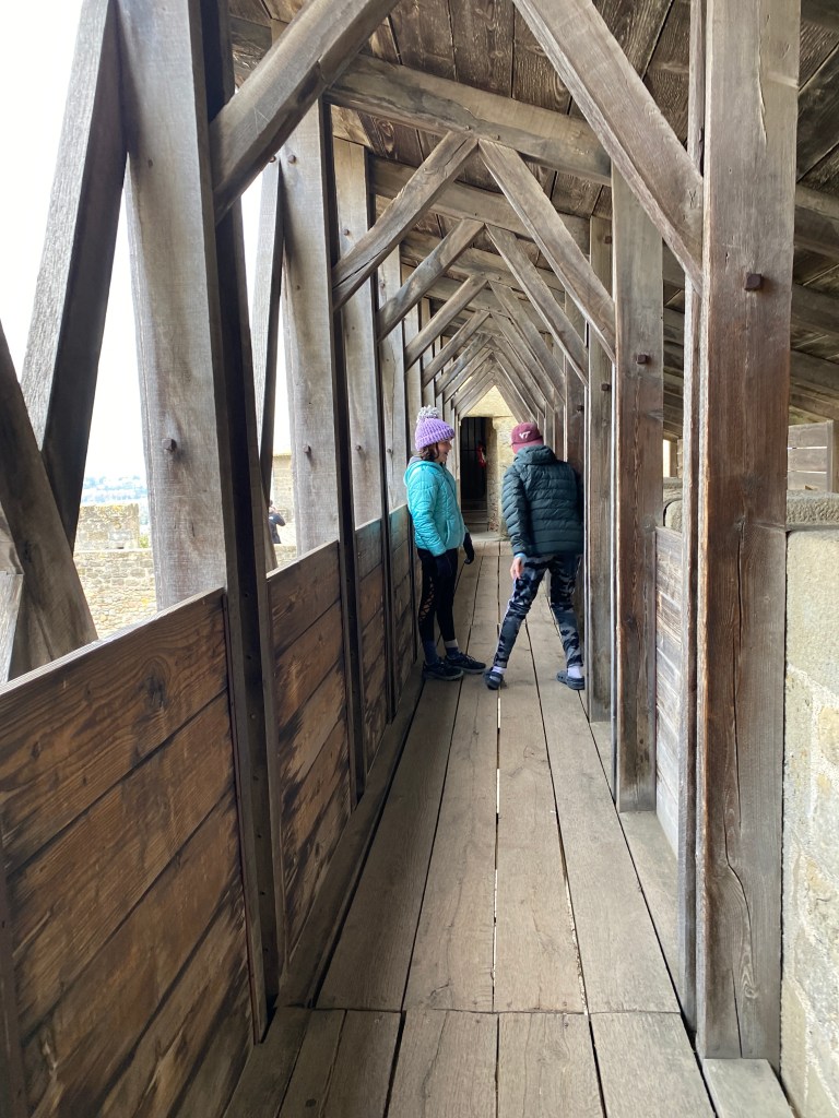 We had no complaints on this tour! Everybody was excited and interested. Portcullis, turrets, spiral staircases, inner wards, loopholes, arrow loops, merlons and crenels, oh my! Who knew my kindergarten teaching days of a unit on castles would bring me so much joy here? I enjoyed the colors and different geometrical shapes against each other.