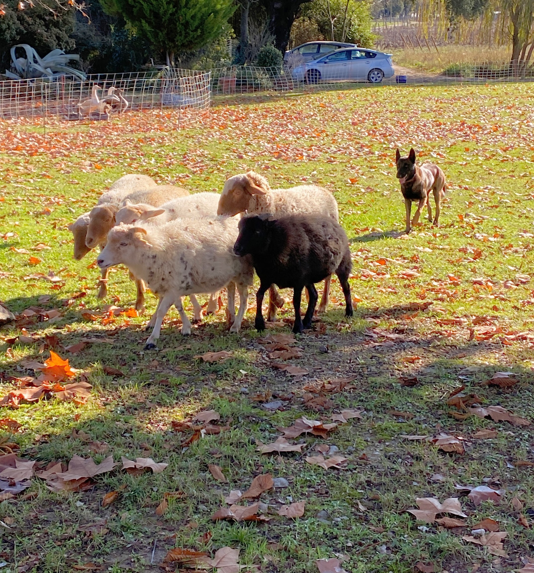 Next we walked to an enclosed pasture housing a small flock of sheep and a gaggle of geese or flock of ducks, not really an expert of geese and duck differences. The same horse farmer led the sheep dog exhibition. Different shepherds, male and female, took turns with their dogs guiding and herding the sheep throughout the field. Some had their dog split the sheep. One shepherd had his dog roundup geese/ducks and walk them into a pen. Yes, I was thinking about the movie Babe while observing these animals and their trainers. All the dogs waiting for their private turn were locked in on the herd from outside the fence. The farmer-shepherd explained the commands being told to the dogs. Some shepherds commanded in unique whistle sounds, others used words to direct their dog to come, stay, turn right (à droite) or left (à gauche). The youngest pup to herd was 9 months old. Even the 20 month old Belgian Malinois, Skeep, had his turn.