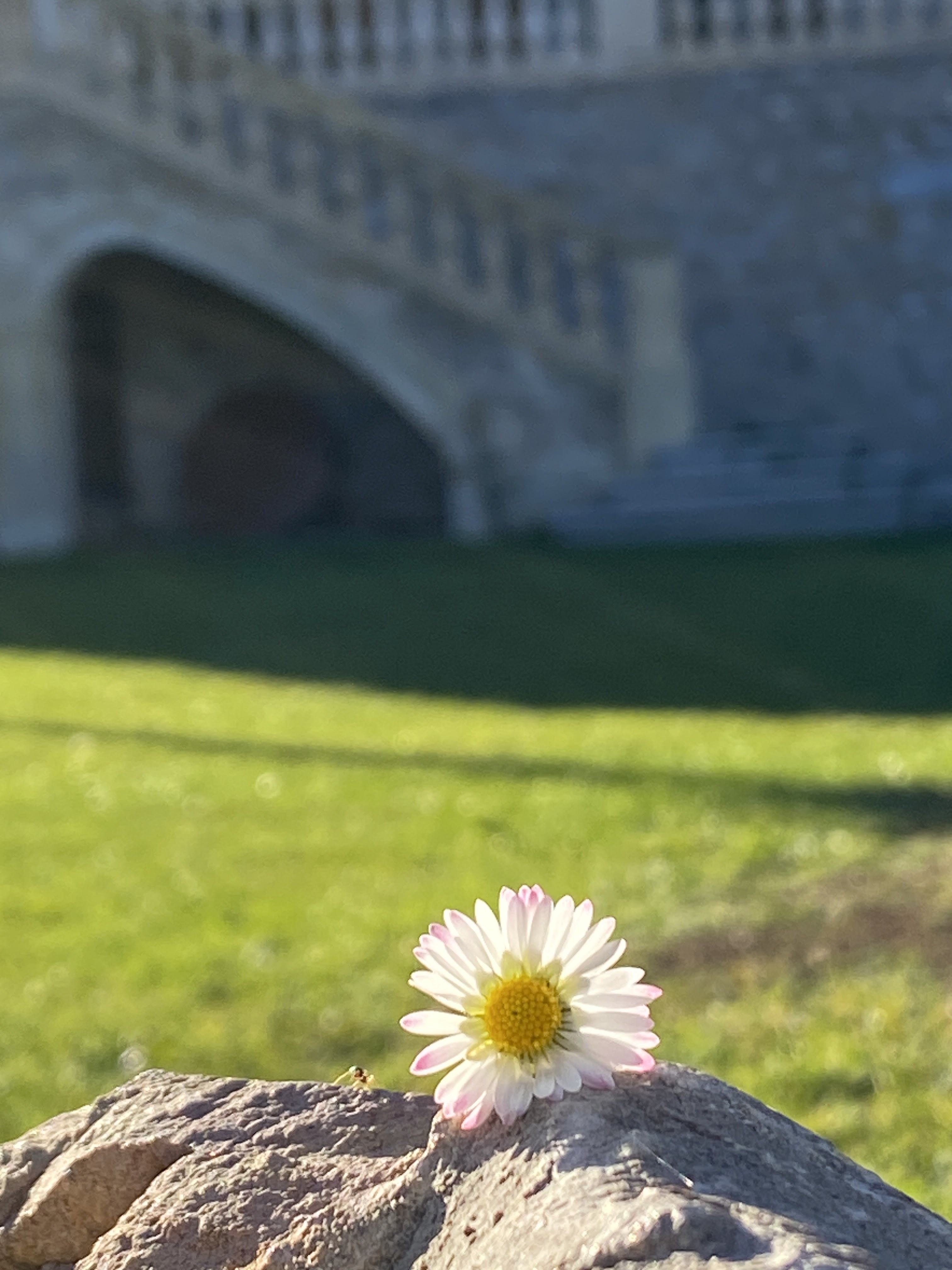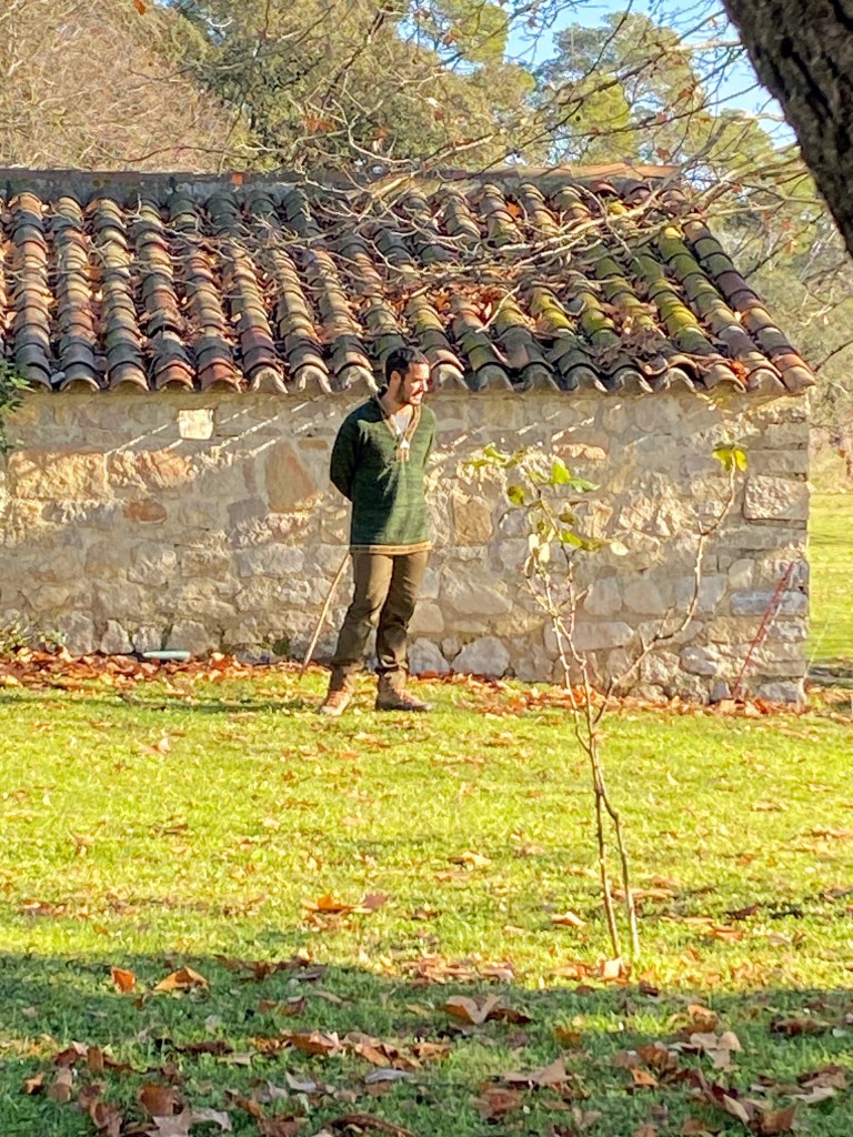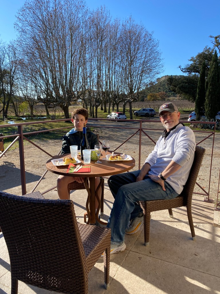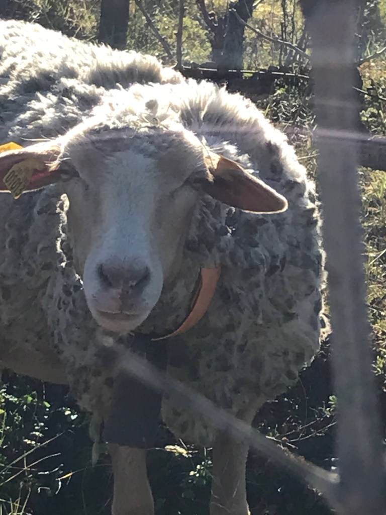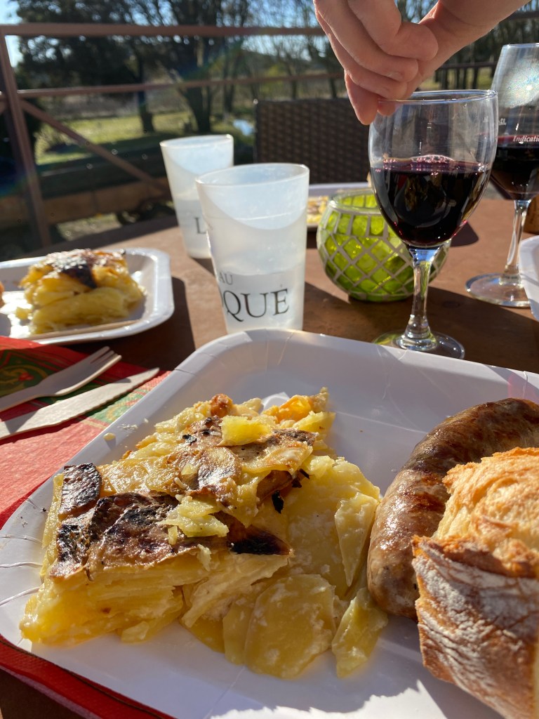 After watching sheep dog herding demonstrations we enjoyed a delicious French lunch of sausage, scalloped potatoes, wine and flan. Mz made her version of Sagrada Familia. I think we were the only ones eating outside, everyone else took their scarves off and headed indoors for lunch.