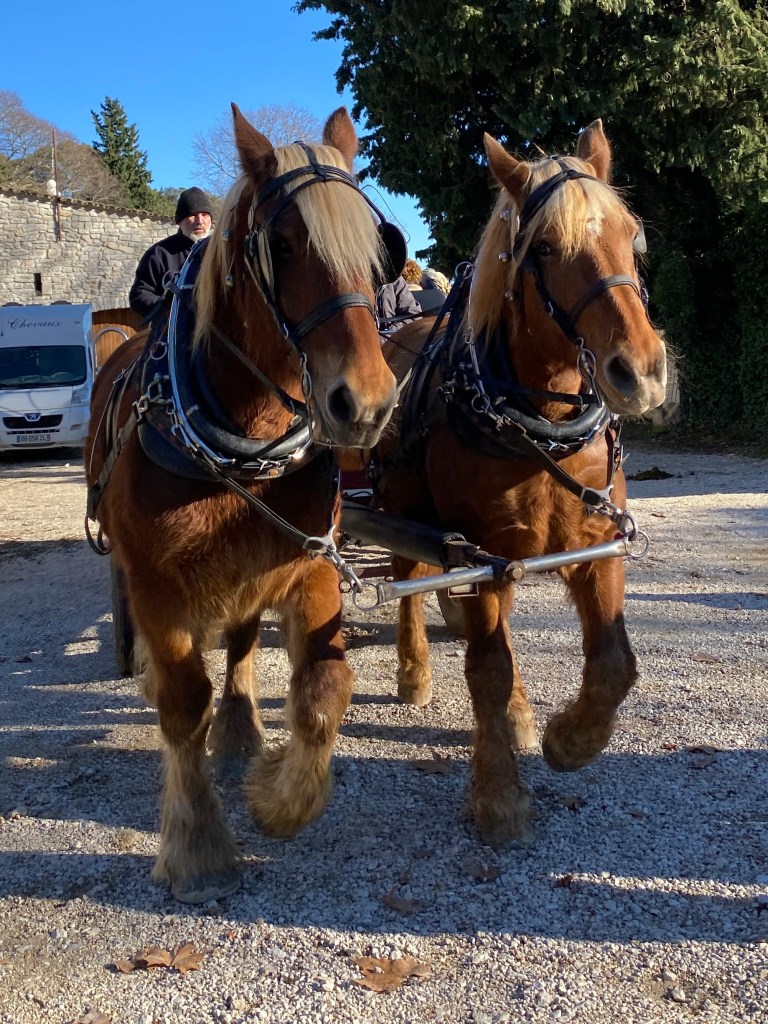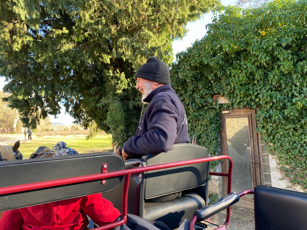 The dogs demonstrated herding again. The young pups struggled focusing this time around, while the older dogs proudly showed off their incredible skills of listening and herding. We ended our time with a ride in an open sleigh pulled by two horses through the vineyards. Jingle bells were included on the horses!