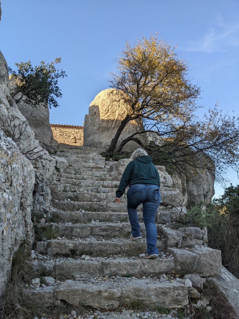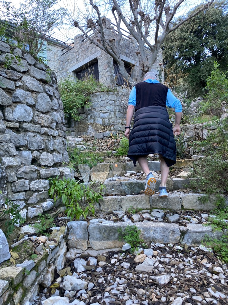 Another day Randy and I took off for a drive which took us to the village of Corconne at the feet of massive cliffs of the limestone Coutach massif. Looking to the west and straight up, a church lookout dating back to 1188 rests on top. Corconne was spared during the cholera outbreak of 1854.