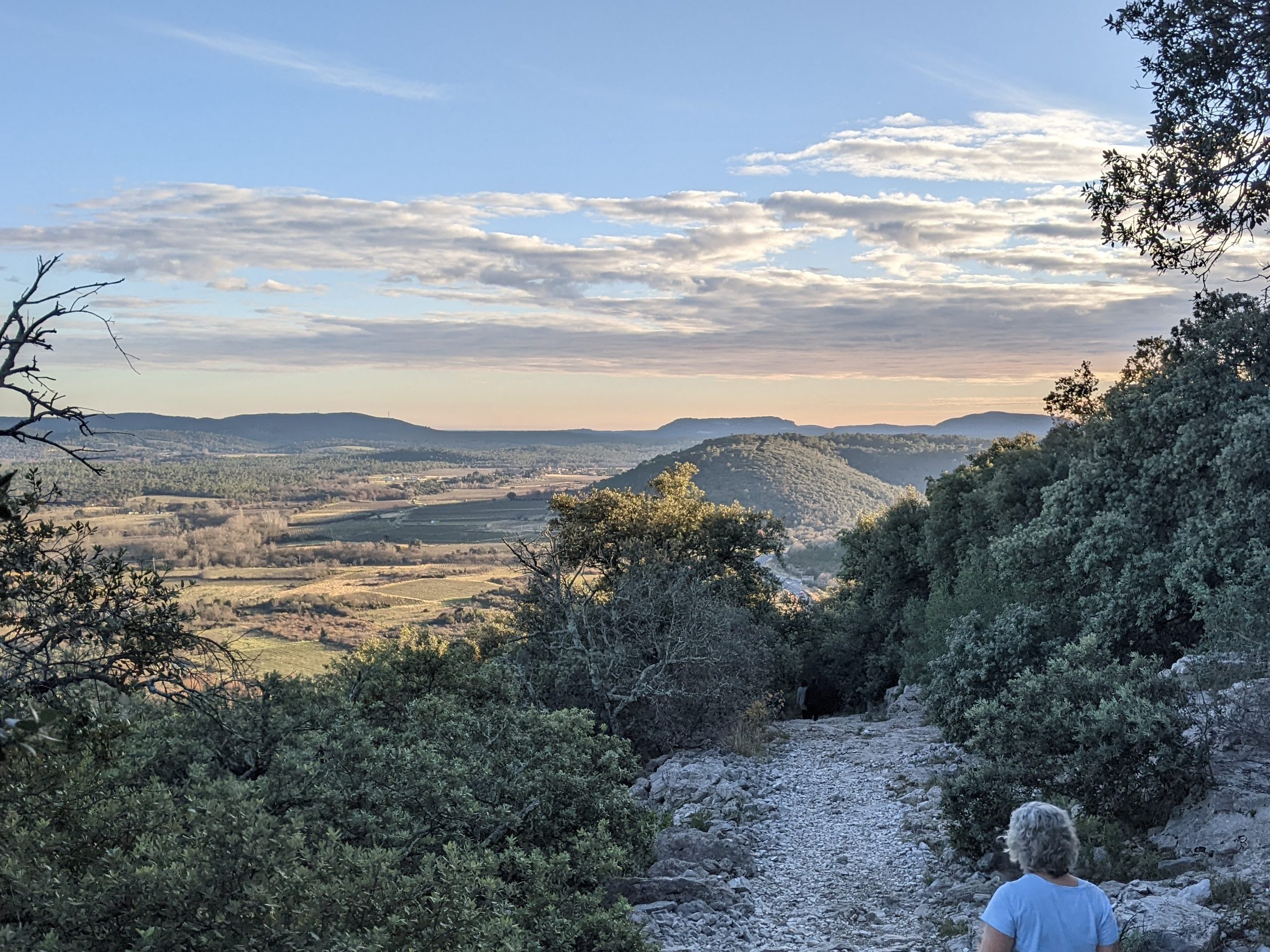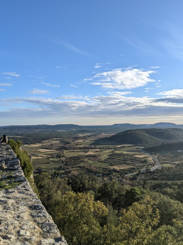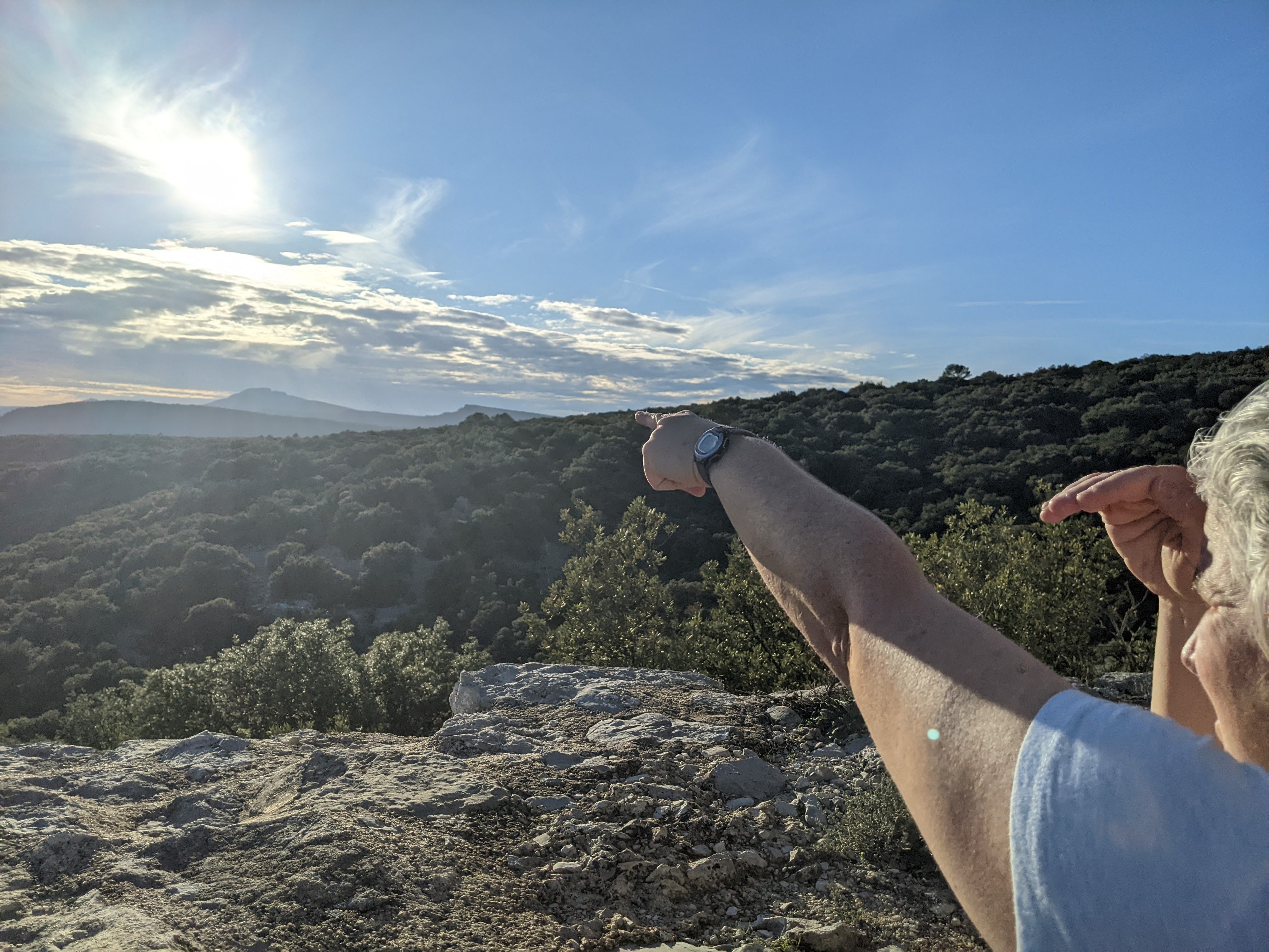 We found a makeshift parking spot and set out hiking for the top. From the top we saw Mount Ventoux to the east, Mediterranean Sea to the south, and Pic Saint-Loup to the southwest. Such a clear day to see it all.