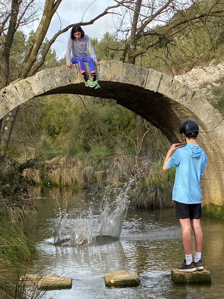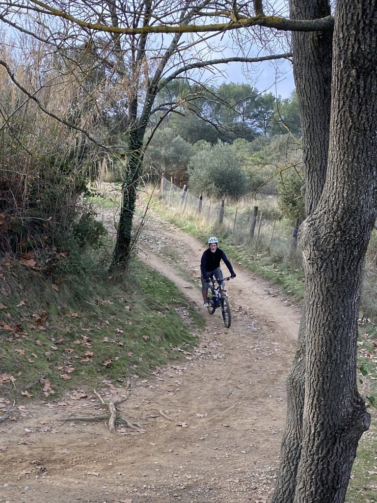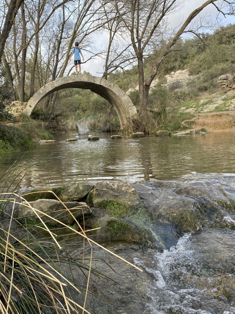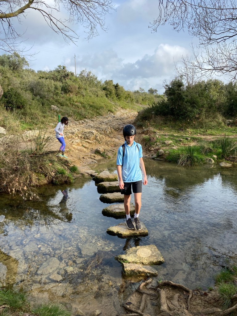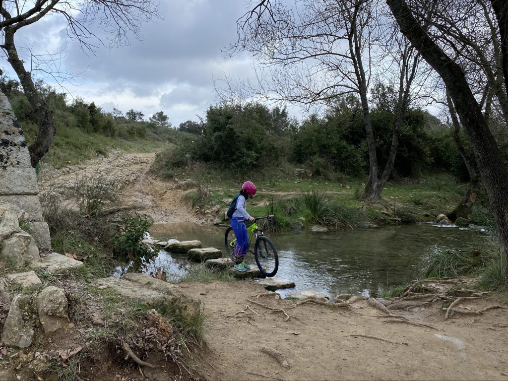 Sunday I was feeling almost 100% from my 10 day virus. The temperature was pleasant, around 60F. We took a family bike ride to a spot labeled by Google maps as “passage à gué” (meaning a ford). We do not typically call the place where one crosses a creek as a ford but rather “a place to cross a creek.” It is 3 miles one way from our house all on back roads. We left Cody at home for this one. Such a fun ride along vineyards and fields of black bulls. We even saw a windmill. The ford did not disappoint us and it actually led us to new mountain bike single track paths.