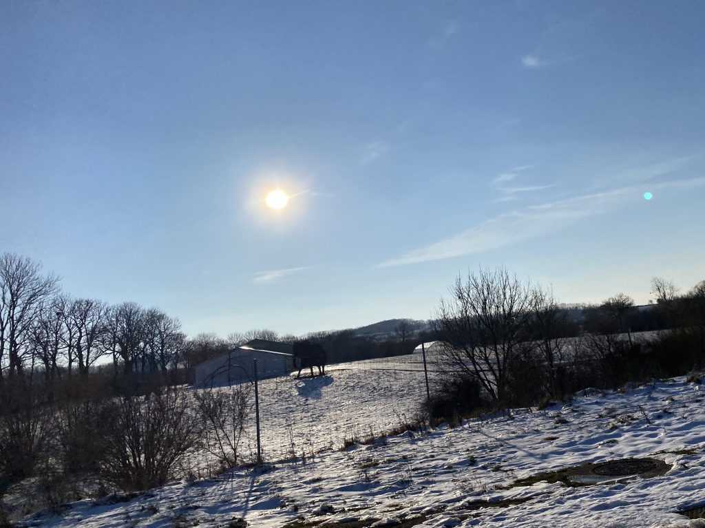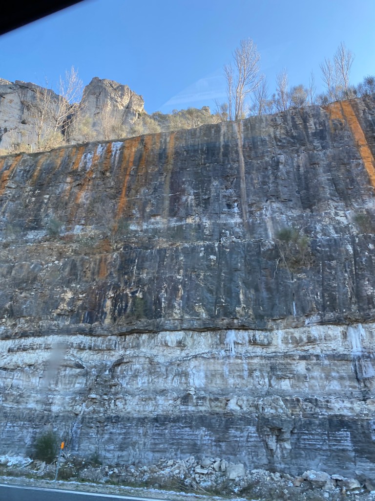 Surprise snow sightings and icicles along the sides were announced by the backseat gallery. Wind turbines outlined some of the mountain ridges. Tunnels put smiles on faces.