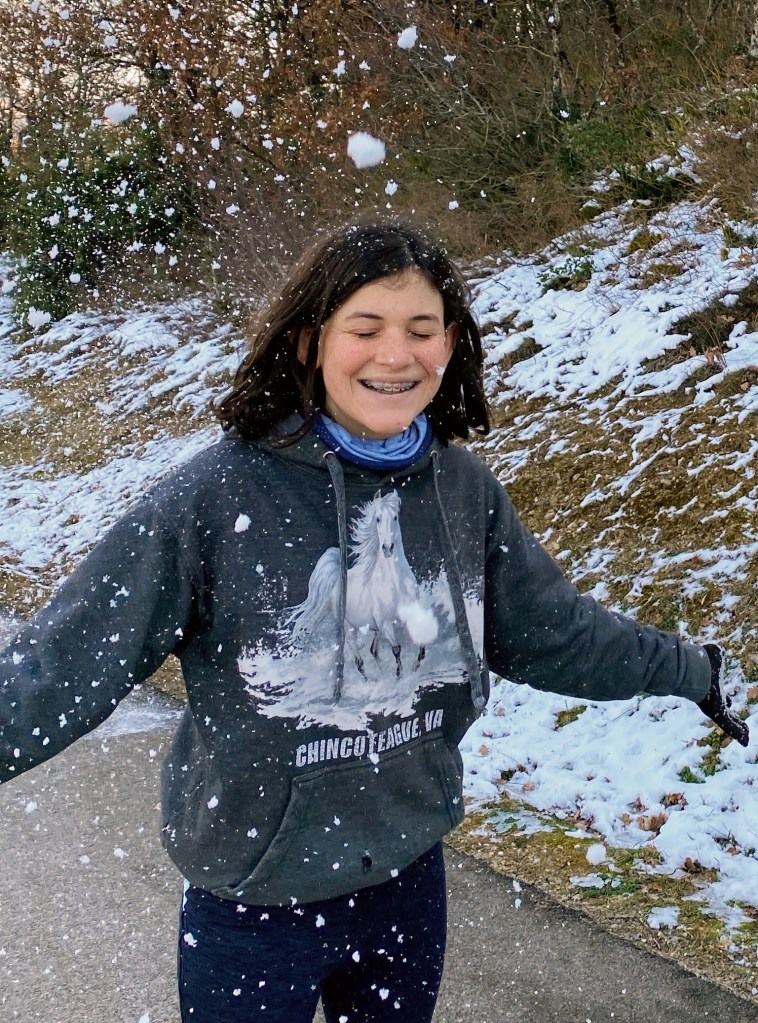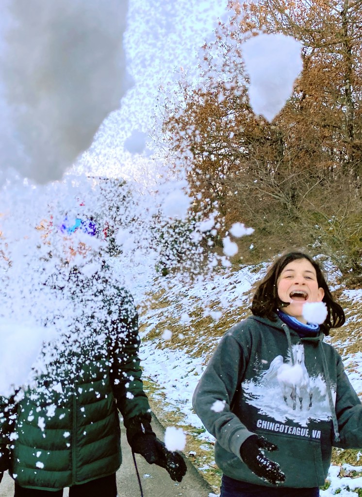 We stopped at a travel center with food, gas, toilets, and a gift shop. Randy filled the car while the kids and I headed to the patches of snow for a little snowball action. Below are also pictures of snow play at our final destination, which will be revealed in the next post.