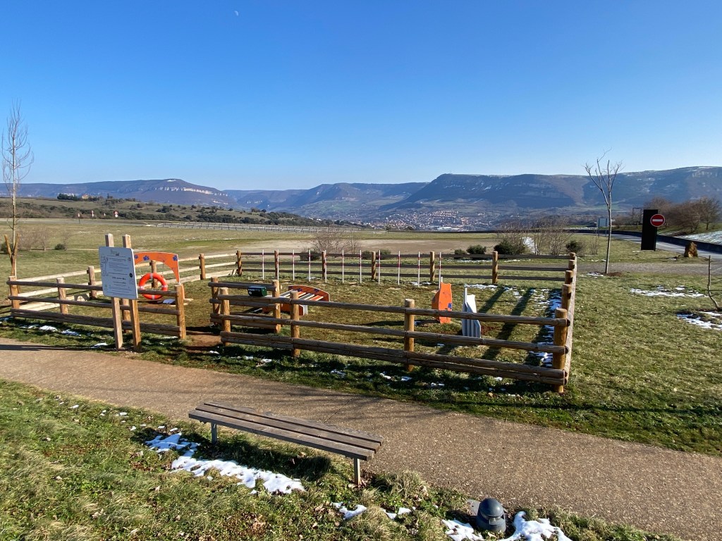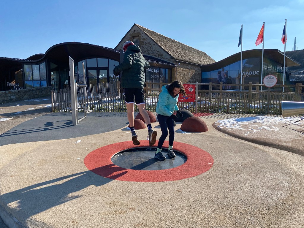 We were glad we stopped at the visitor’s center on the other side. The center had a mini dog agility park, and playground with a in ground trampoline,