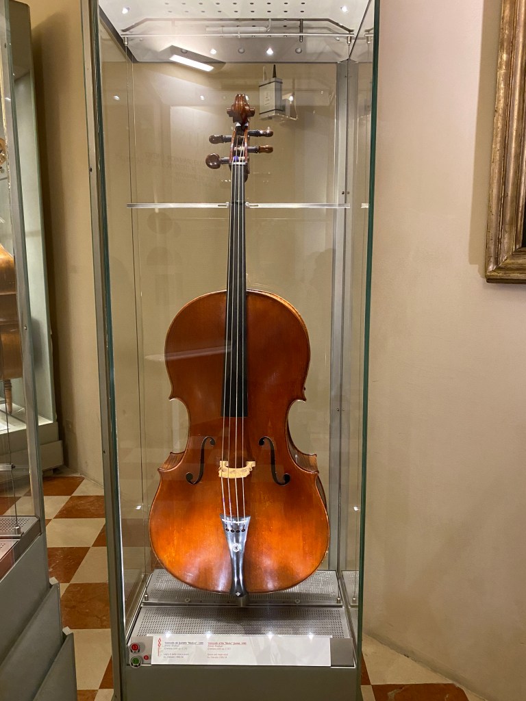 A $16 million Stradivarius musical instrument and its family members stood proudly in front of us.