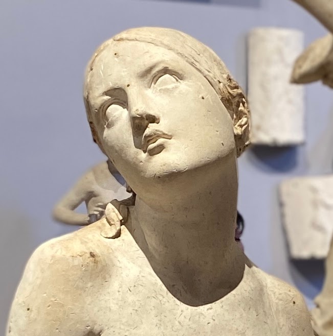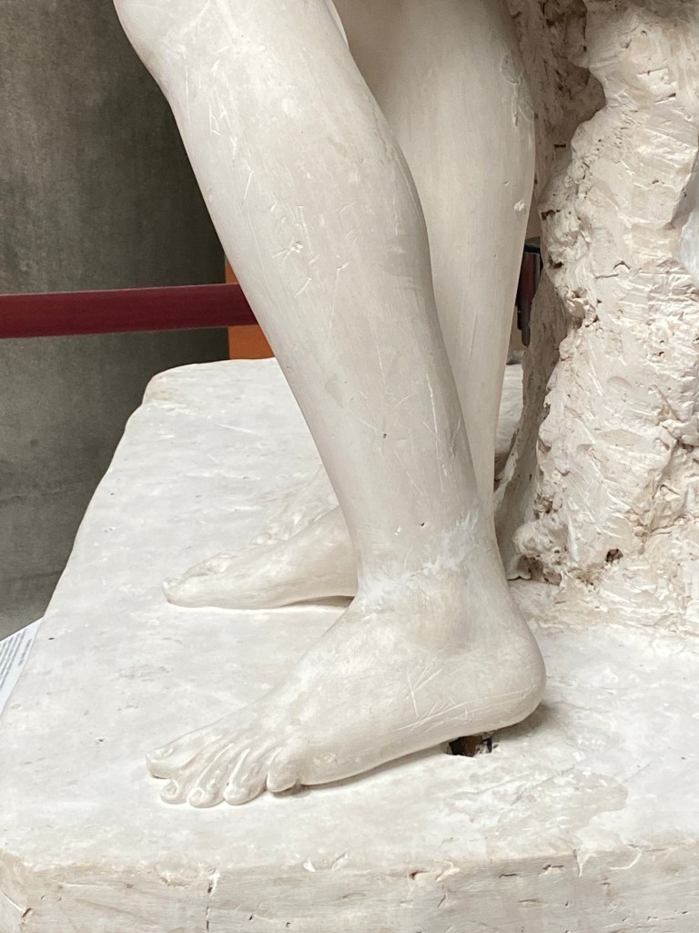 In the room of sculptures we found pieces reminding us of family and friends. This face reminded us of our friend Audrey. A child with a dog reminded us of Mazie. We replicated a sculpture for fun.