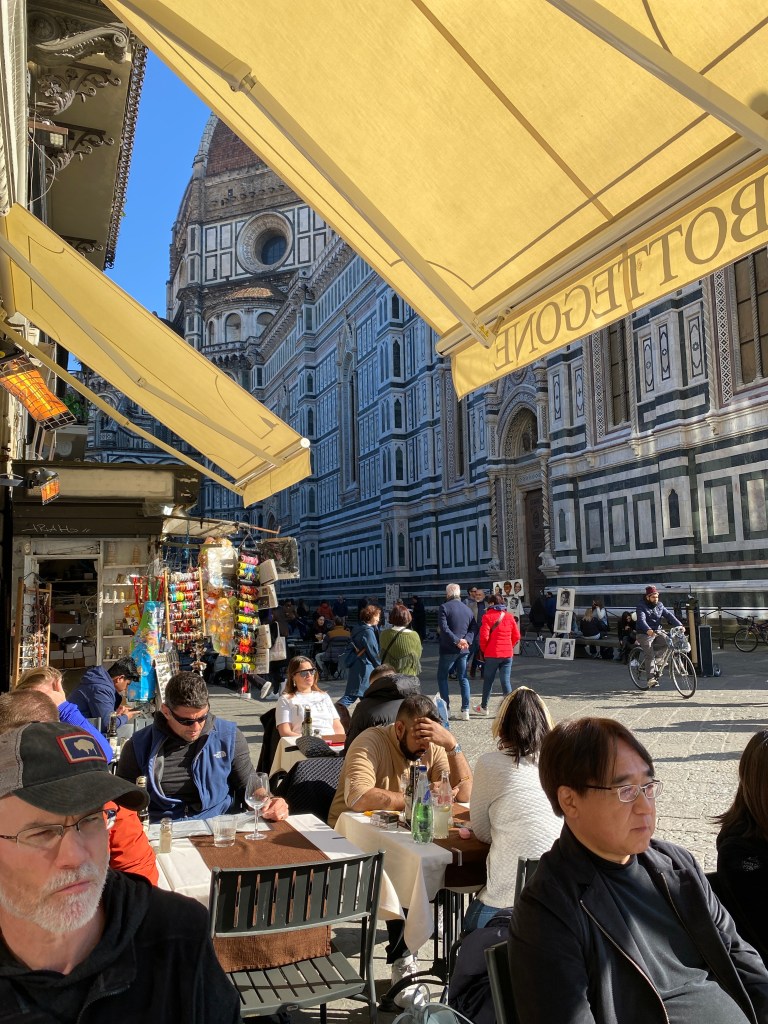 After yet another ankle rest we concluded our time in Florence with a real Italian dining experience. The outdoor seating atmosphere led to conversations with other dining guests. Italian music played in the background. Dinner and coffee were excellent.