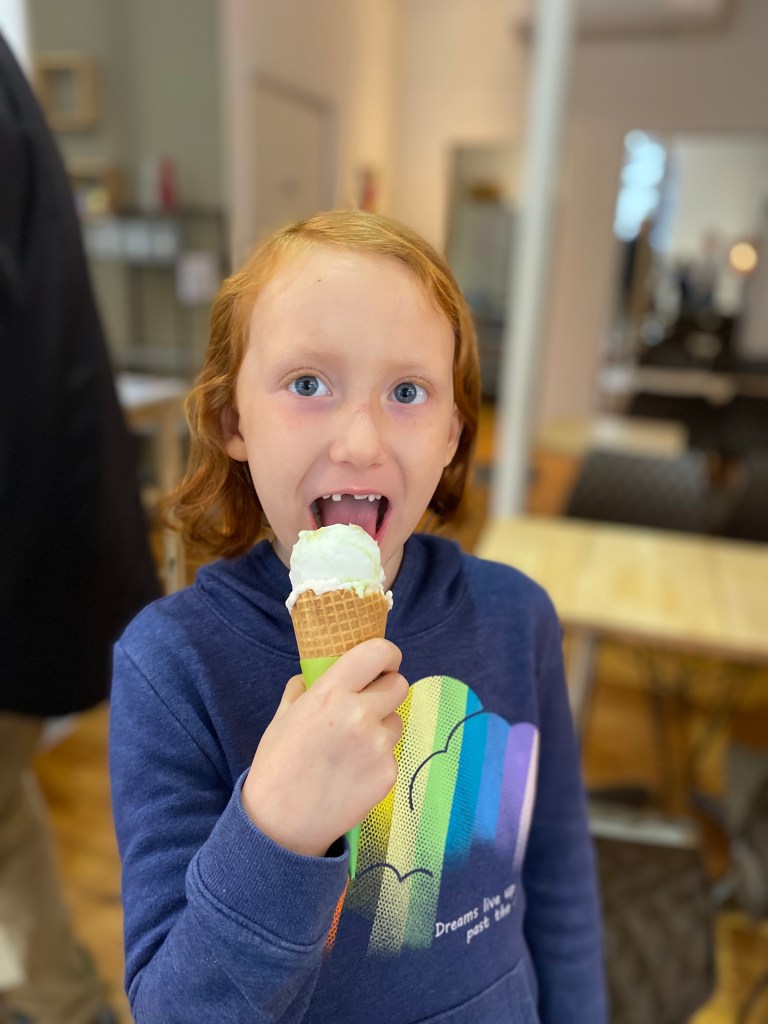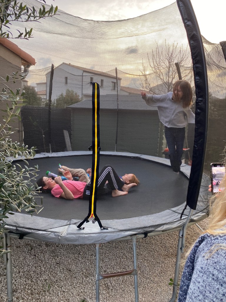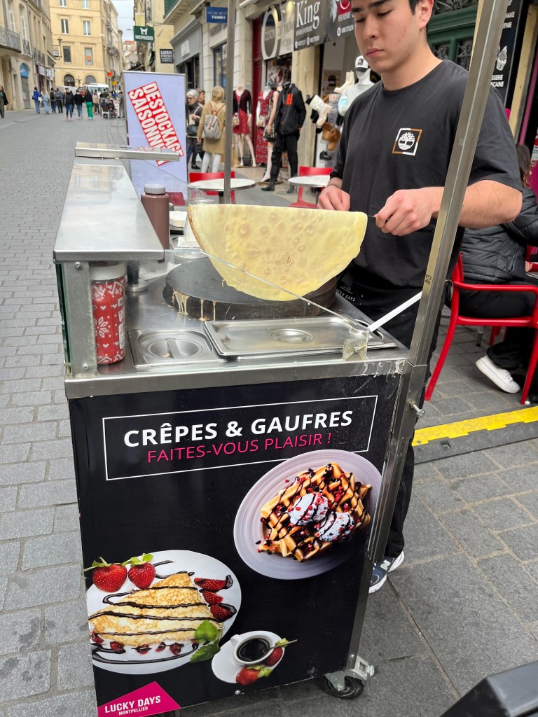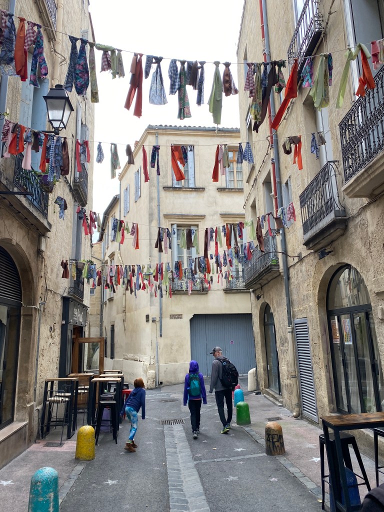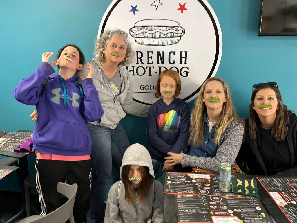 Having visitors means showing them around our area, which I really enjoy. Occasionally we get to try something new to us to spice it up a little. Dana, James, Emerson, Avery, Bennett, and Krista landed in Barcelona and enjoyed a few sightseeing days before heading our direction. Their train was late due to famous French strikes. French hotdogs and ice cream in the city proved to help the atmosphere. Mazie was great at showing Emerson how to take pictures in the small city lanes. Looking for bikes stuck in walls, painted buildings and stairs was fun for all ages. Our favorite book store is always a must if there is time.