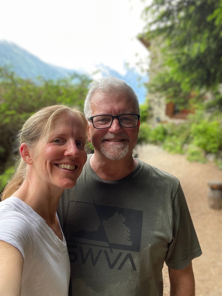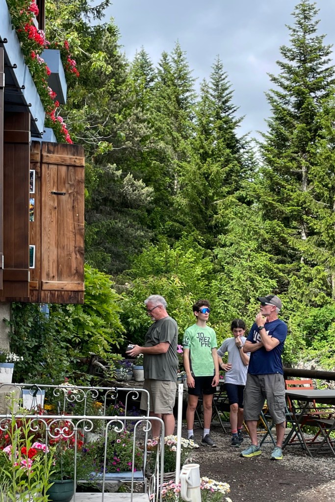 First stop was grabbing the last sandwiches at the little café. As we found a picnic table we heard, “Go HOKIES!” Yes indeed, our clan of VA Tech clothing advertisements was spotted and greeted warmly on the side of the French Alps by fellow Hokies. College memories from different years were shared and smiled upon. “18 going on 50+,” should have been the caption for this moment in time snapshot.