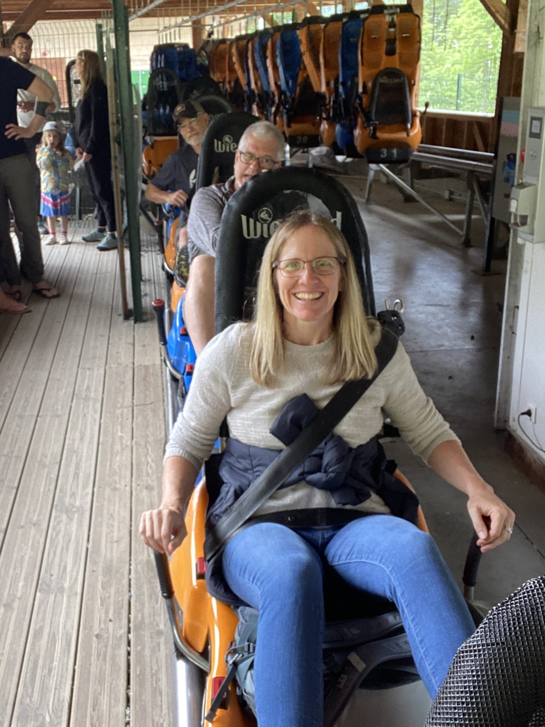 Mazie and I took the gondola to the bottom and enjoyed a 4-D movie. Once home we saw evidence that Cody missed us by moving our socks near his best friend, Pooh Bear. We ended the night at a fun restaurant that had bright copper kettles and pans hanging for decoration. Our last dinner out and Raclette was on the menu, on the table, and in our mouths.