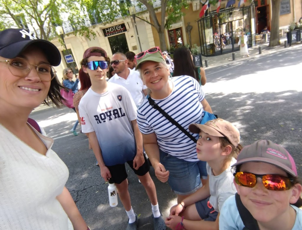 The venue was absolutely unique and amazing. We walked around while the movie was playing, finding different angles to watch. The air was cool and welcoming. Cam, Mazie, and Kellen even enjoyed the show. We grabbed French sandwiches to go and continued on to our journey through Aix en Provence.